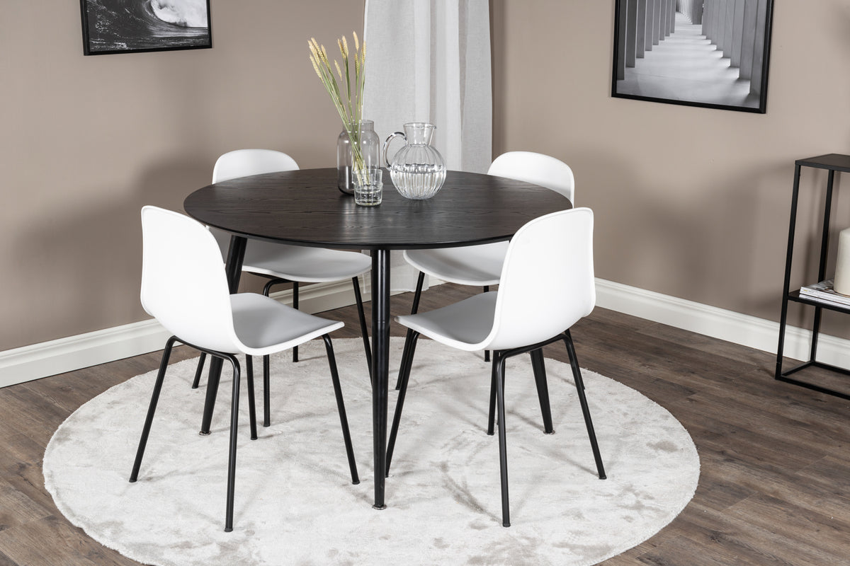 En madgruppe i moderne og stilfuldt design. Spisebordet Dipp og spisebordsstolene Arctic er den perfekte kombination til hjemmets hjerte, som sikkert passer lige så godt til dine behov som til dit øvrige interiør.