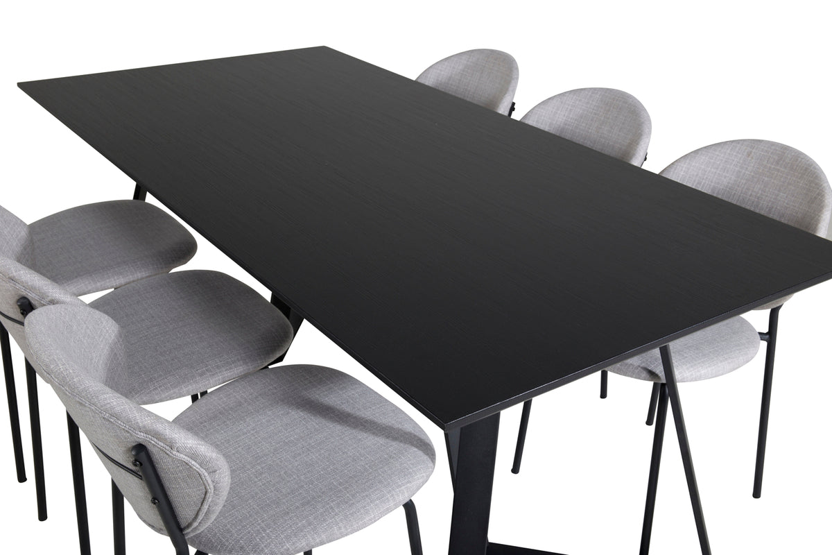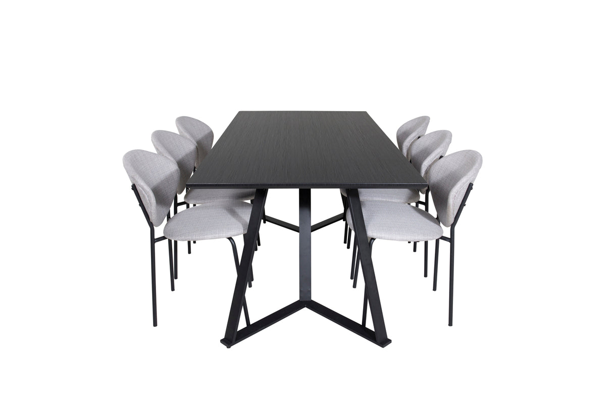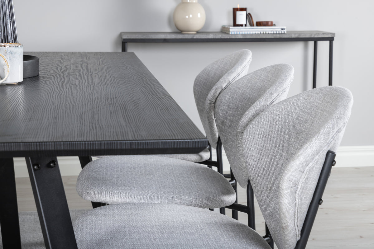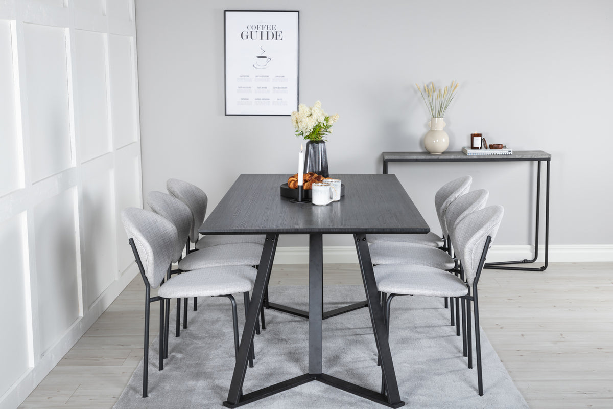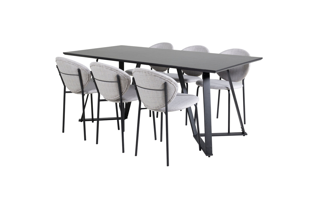 En stilfuld spisegruppe kombineret af spisebordet Marina og spisebordsstolene Vault. Skab noget pænt og socialt med plads til god mad og samvær!
