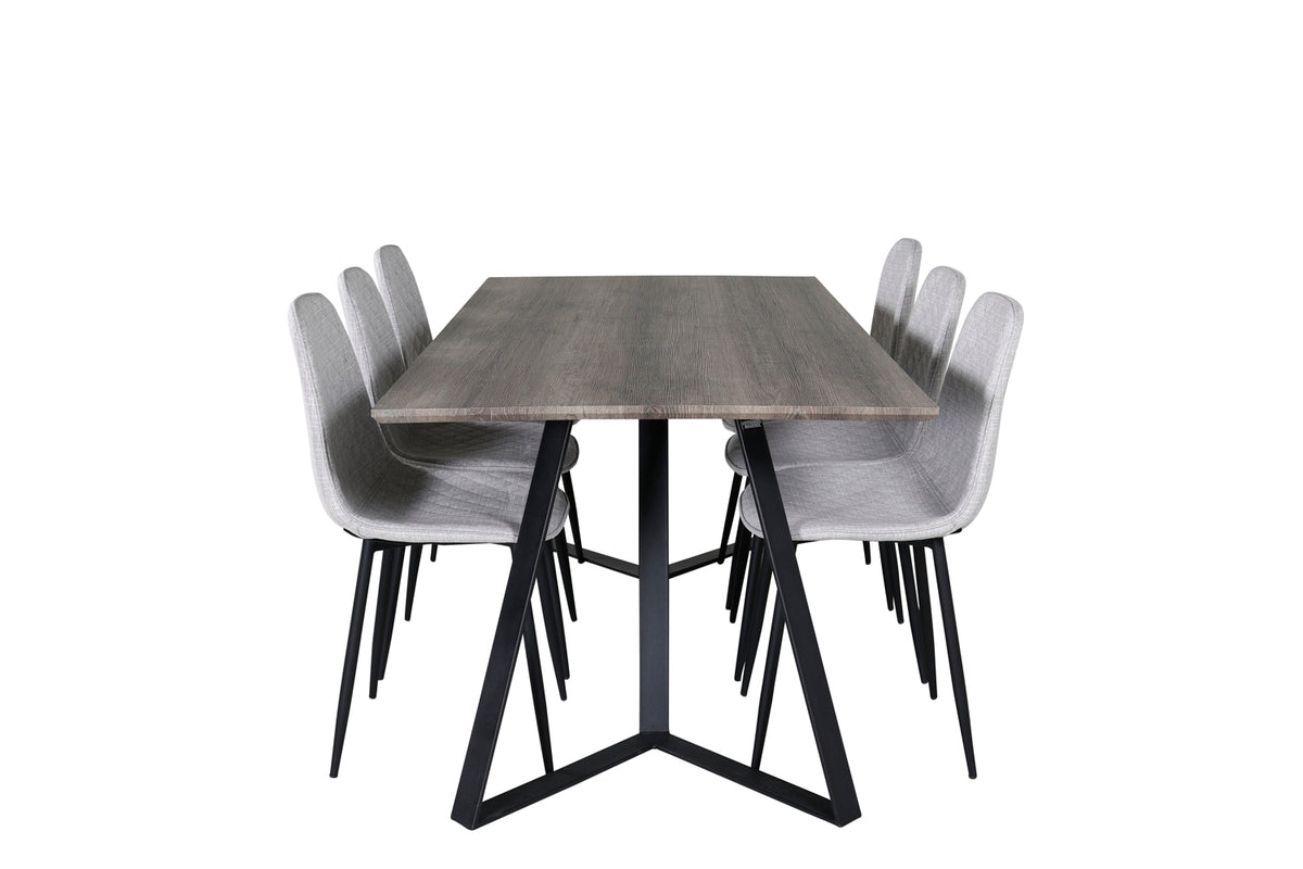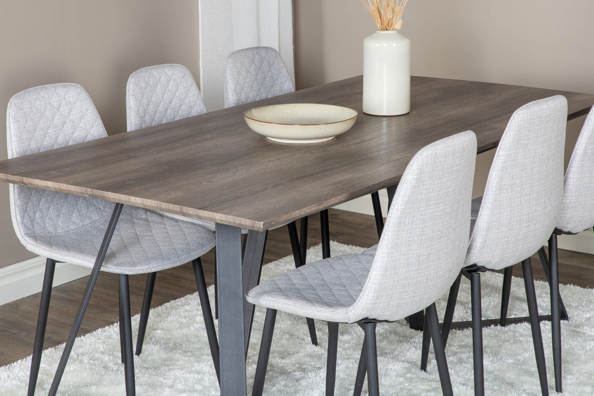 Polar & Marina spisebordsstol 2-pak grå + rektangulært spisebord 180 x 90 natur
