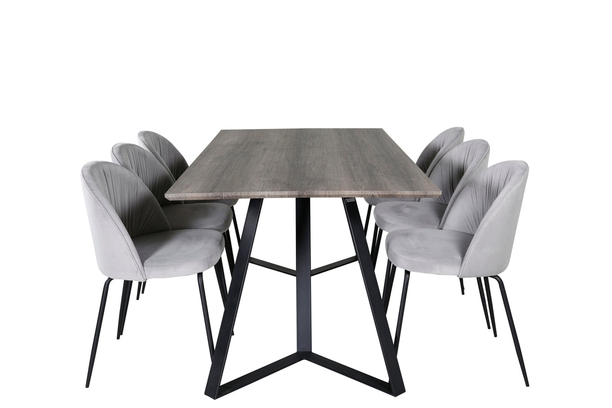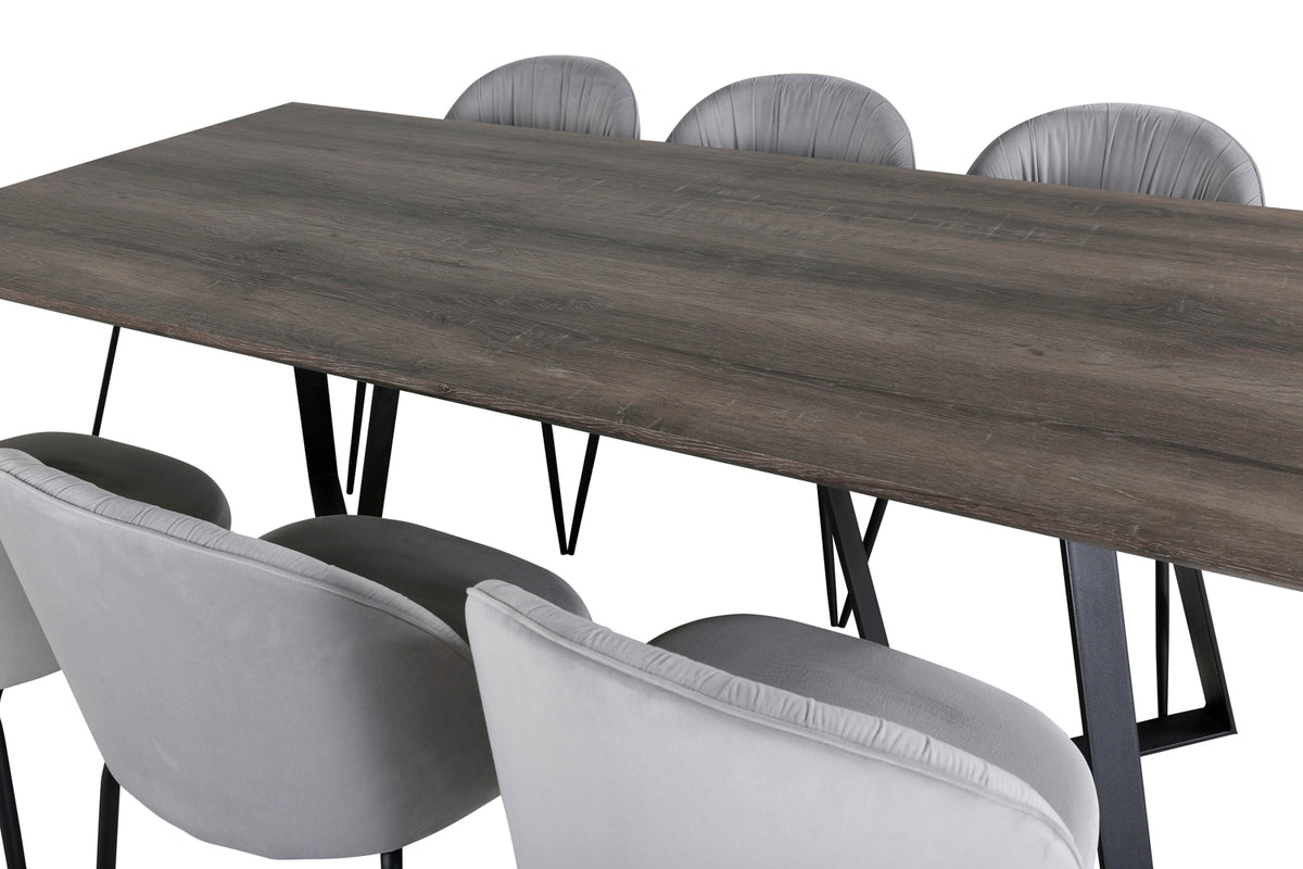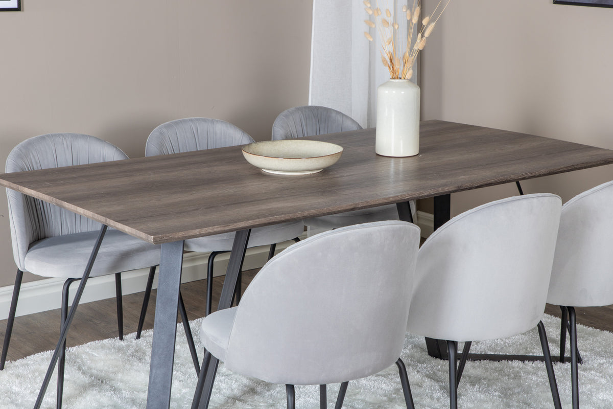 Wrinkles & Marina spisebordsstol 2-pak grå + rektangulært spisebord 180 x 90 natur