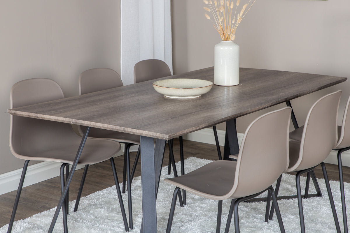 Vores populære spisebordsstole Arctic i den lækre muldvarpefarve Khaki. Her sammen med spisebordet Marina i et smukt design. En indbydende og iøjnefaldende spisegruppe, der skaber en varm følelse i rummet!