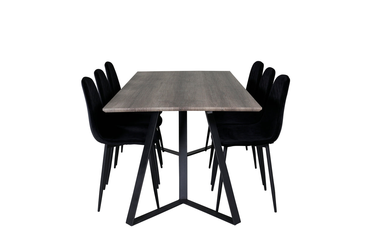 Polar & Marina Spisebordsstol 2-pak Sort + Rektangulært Spisebord 180 x 90 Natur