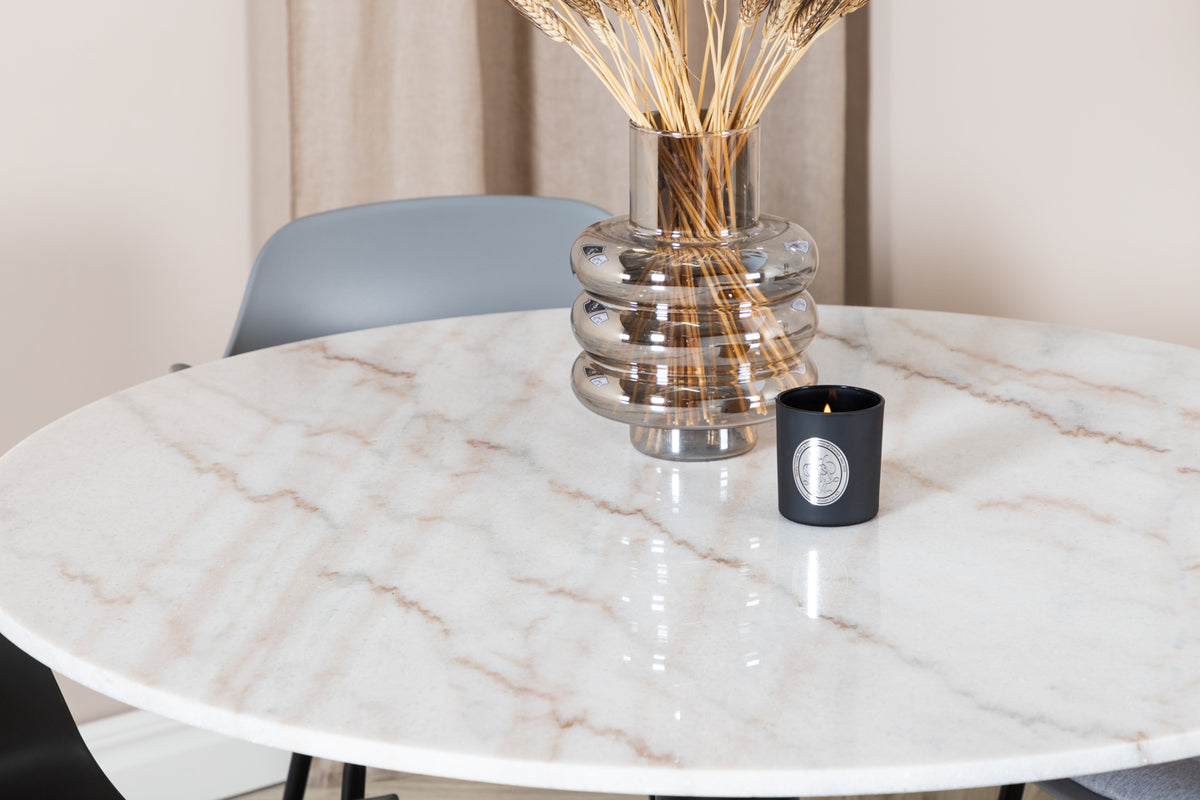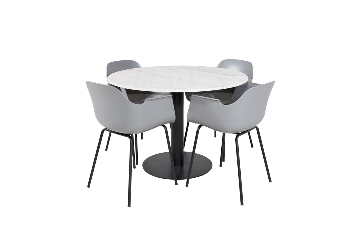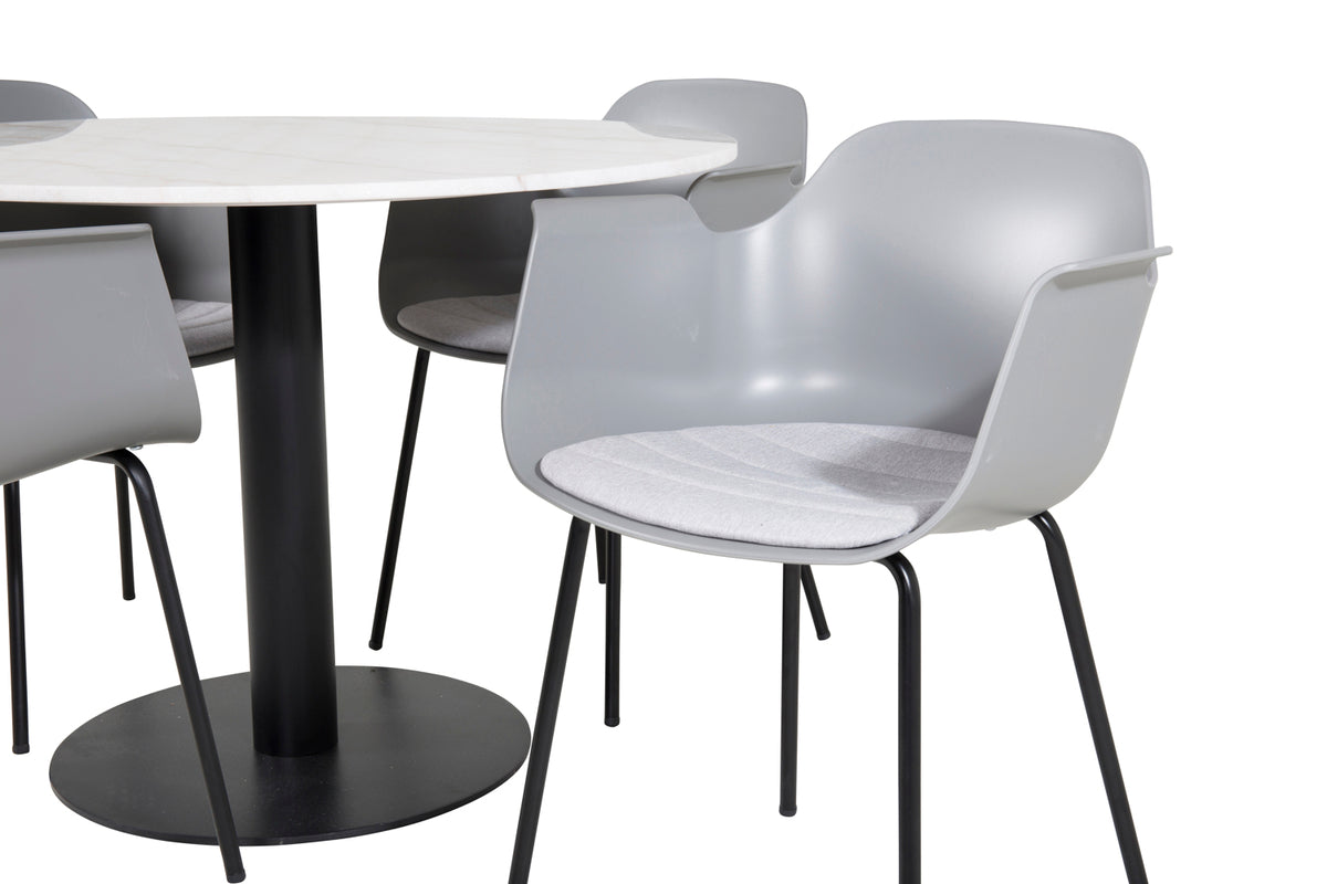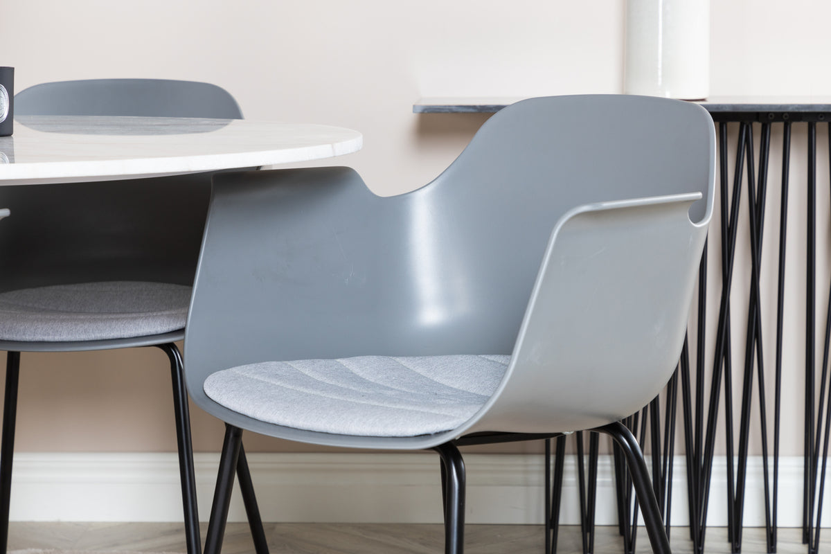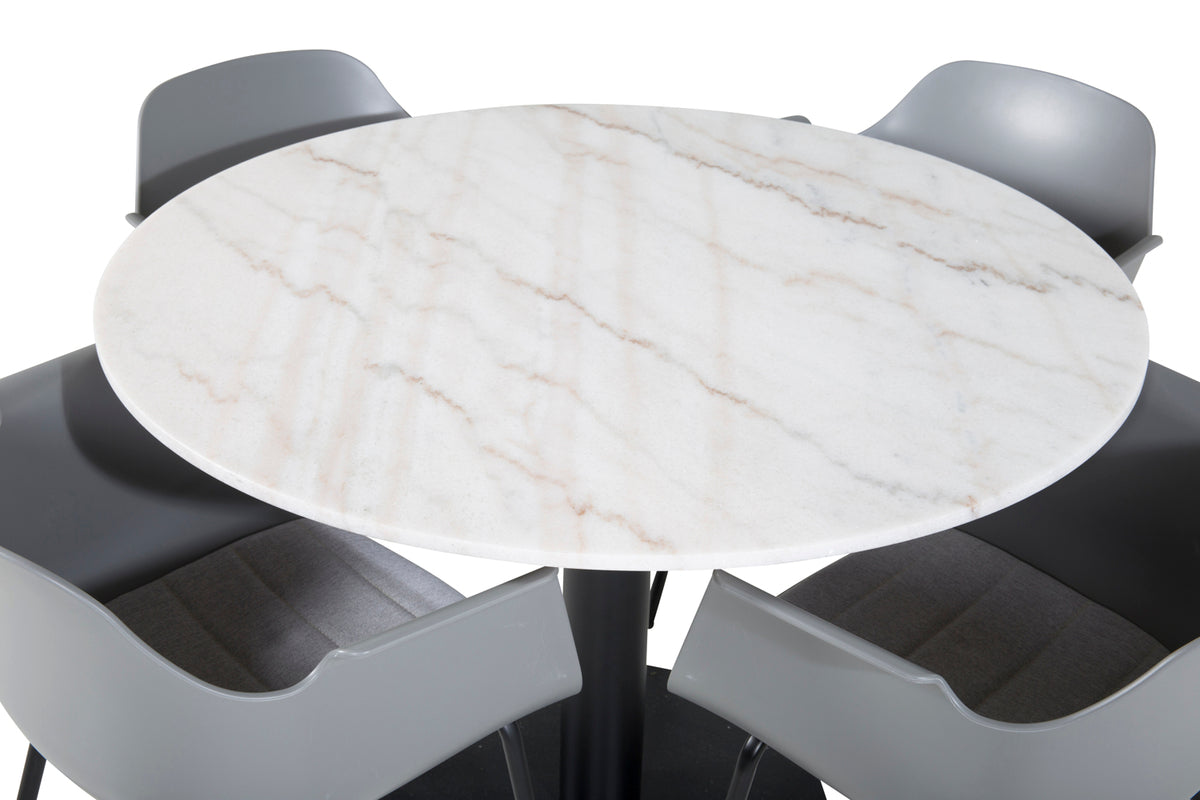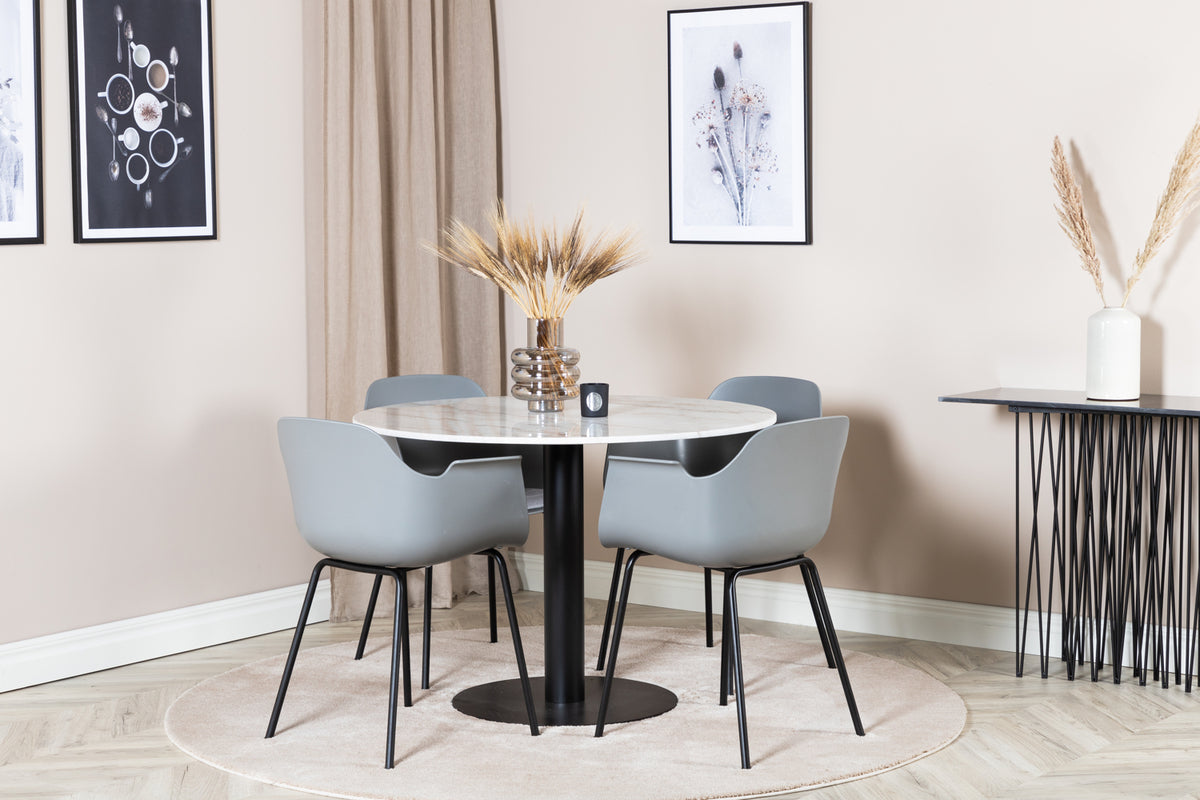 Det elegante marmor spisebord i Estelle serien er her kombineret med rammesstole i Comfort serien i et trendy design. Spisegruppen er perfekt til dem, der ønsker at skabe en hyggelig og moderne stemning i hjemmet.