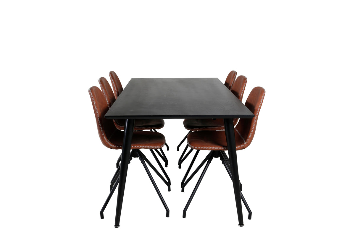 Dipp & Polar Rektangulært Spisebord 180 x 90 Sort + Spisestol 2-pak Brun