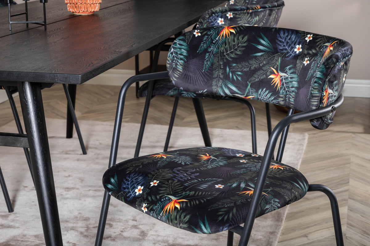 Vores udtrækkelige spisebord Sleek i et moderne design sammen med vores frække blomster-mønstrede spisebordsstole Arrow er lavet til dem, der ønsker, at spisegruppen skal blive centrum i hjemmet!