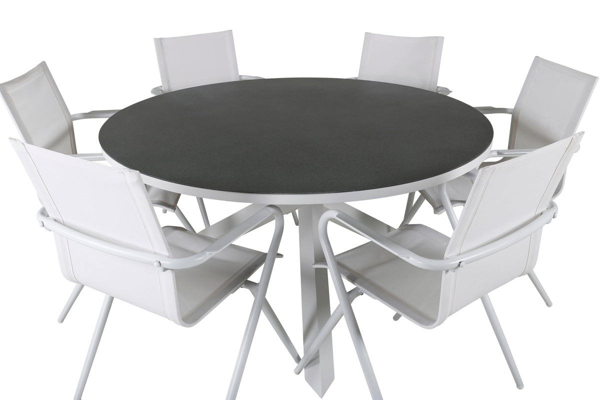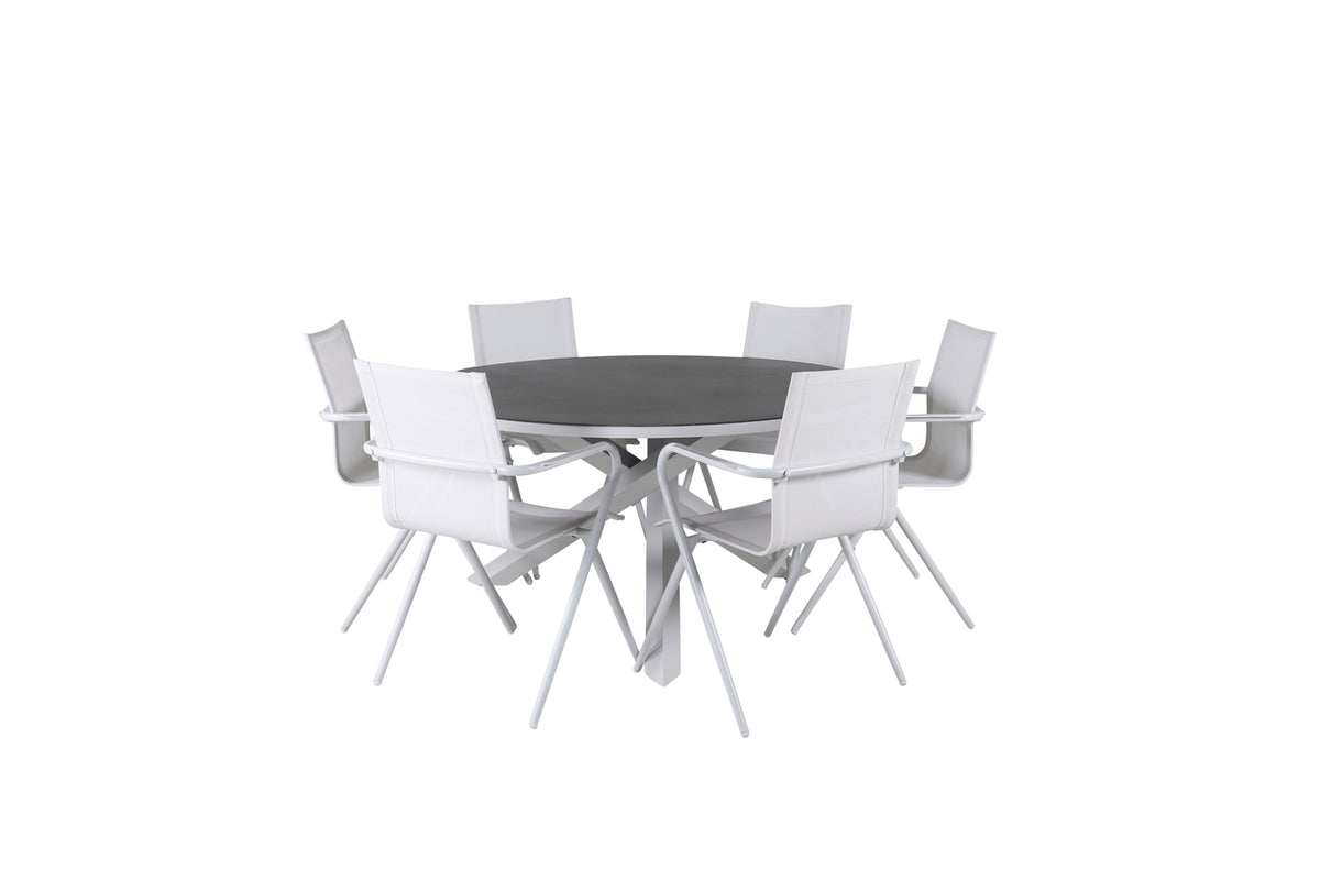 Spisebordsstol 6-pak Hvid + Rundt spisebord 140 Grå