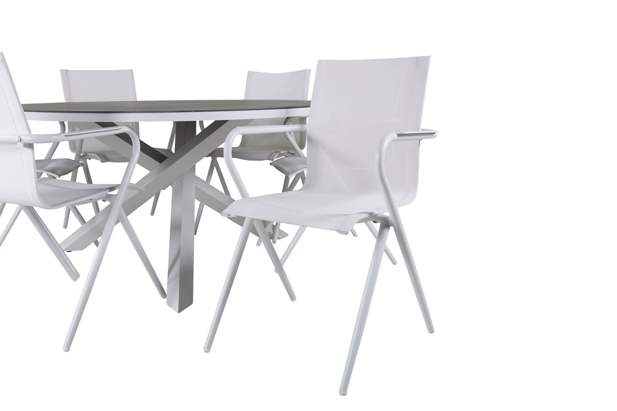Stilrent, smart og slidstærkt! Her tilbydes du det bedste af alle verdener, når du kombinerer spisebord Copacabana med komfortable stole fra serien Alina. Spisebordet har et klassisk og tidløst design, og i stolene sidder du og dine gæster komfortabelt i flere timer. Skab et moderne blikfang på terrassen i sommer!
