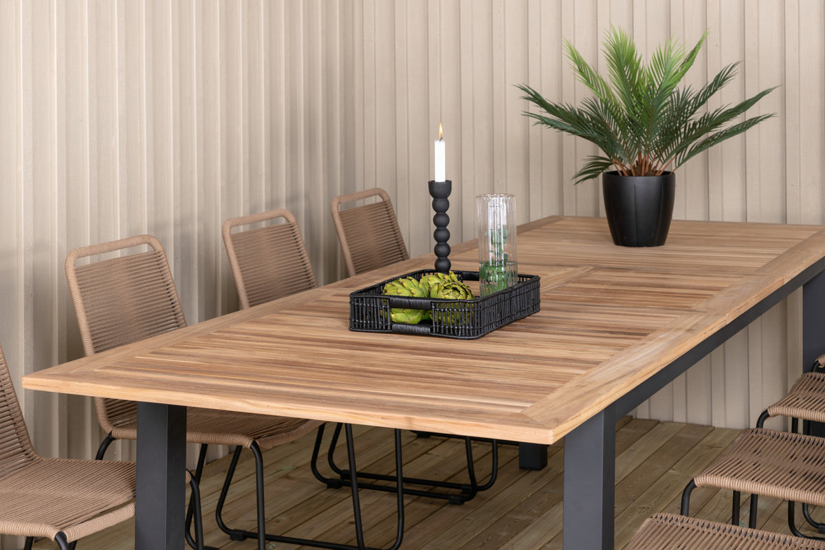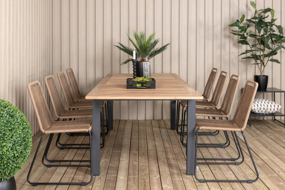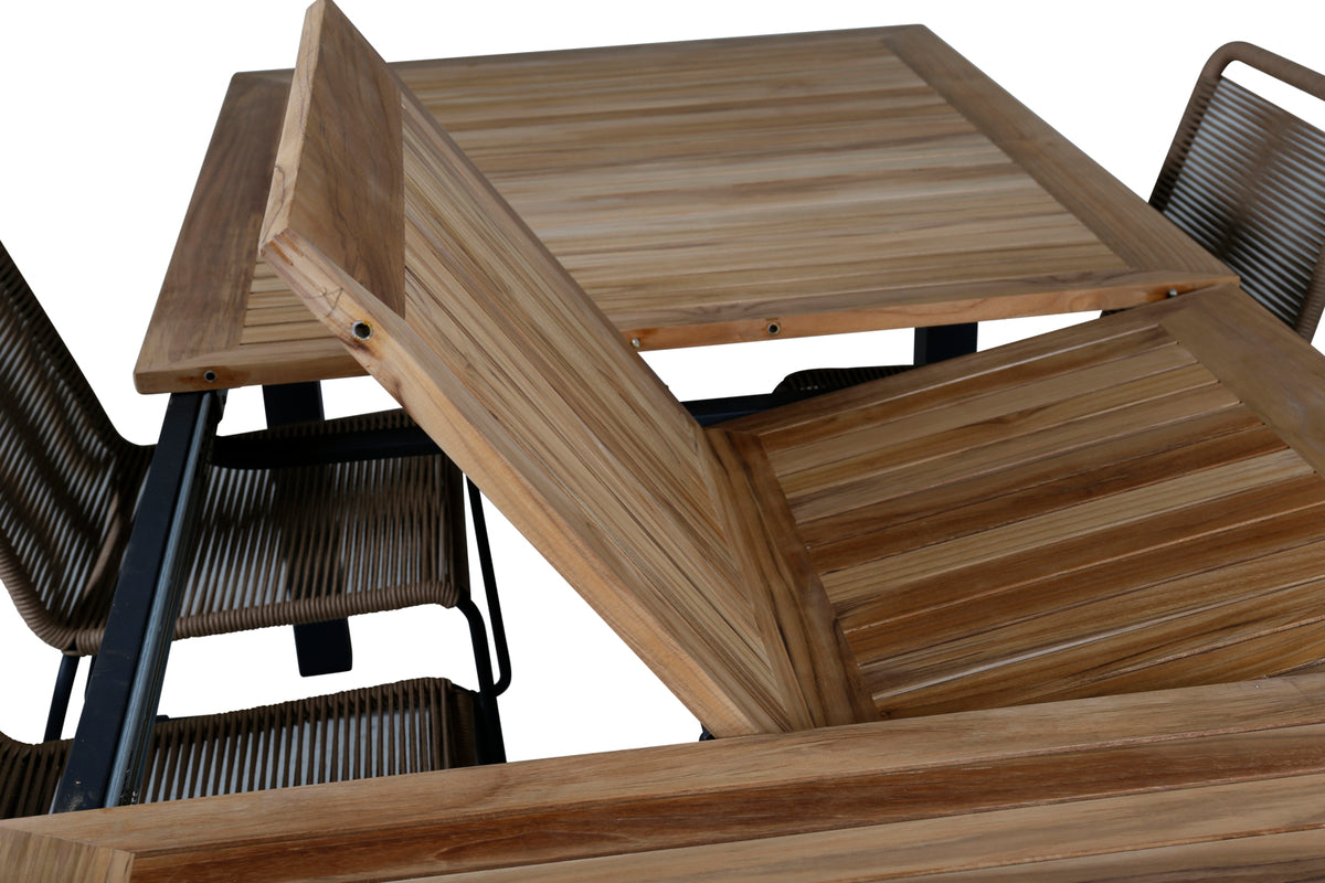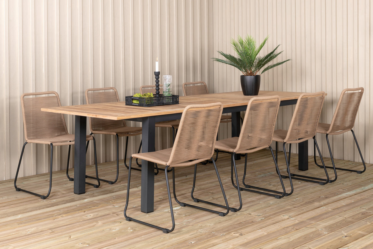 Velkommen sommerens enestående udeliv med en spisegruppe som rummer plads til både familie og venner! Her kombineres spisebord Panama som kan forlænges efter behov, sammen med lattefarvede spisebordsstole fra serien Lindos. Møbler terrassen moderne i jordnære farver!