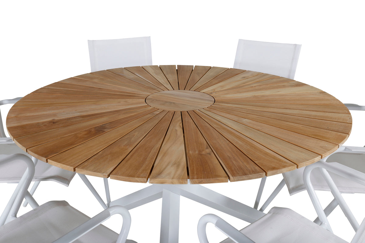 Spisebordsstol 6-pak Hvid + Rundt Spisebord 140 Natur