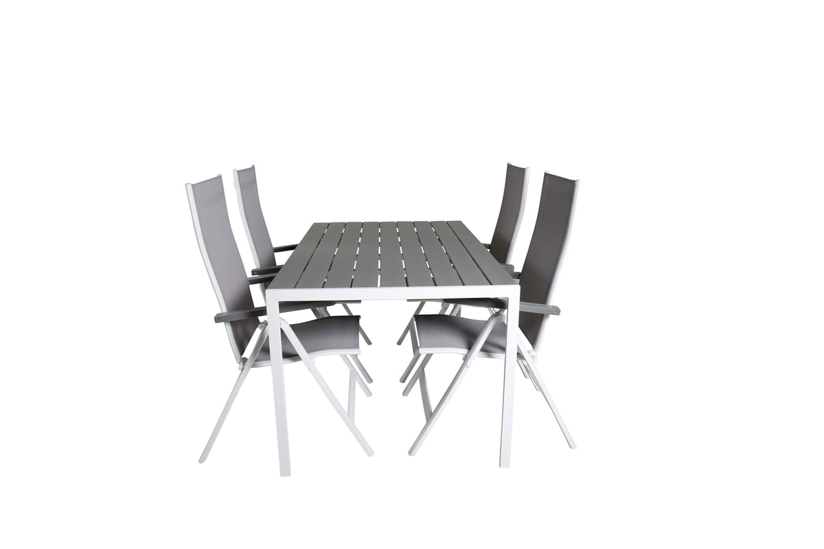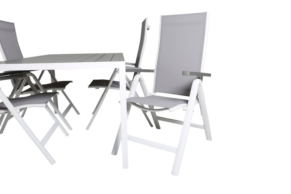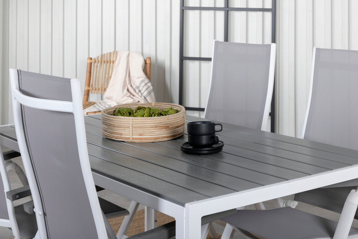 En moderne spisegruppe til terrassen i tidløs grå farveskala! Her kombinerer vi spisebord Break i klassisk stil sammen med foldbare spisestole i serien Albany. Lad terrassen præges af din nye iøjnefaldende spisegruppe og nyd bekvemme, solrige måltider!