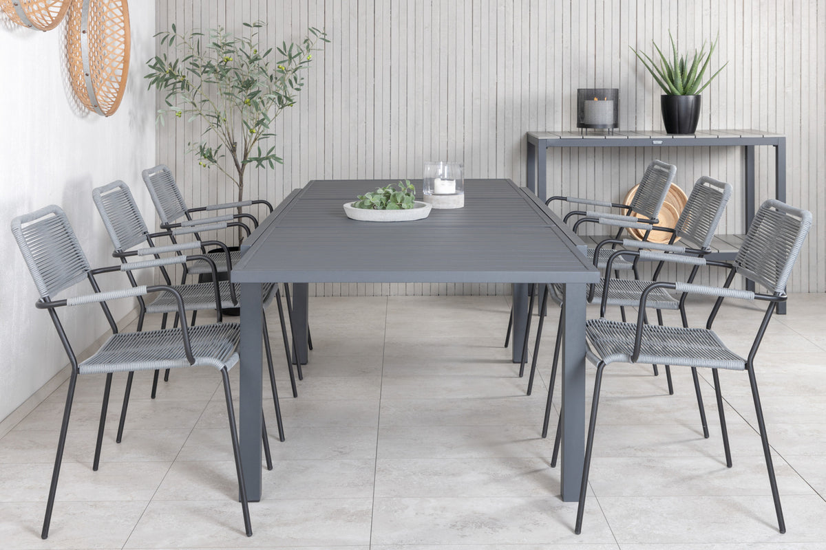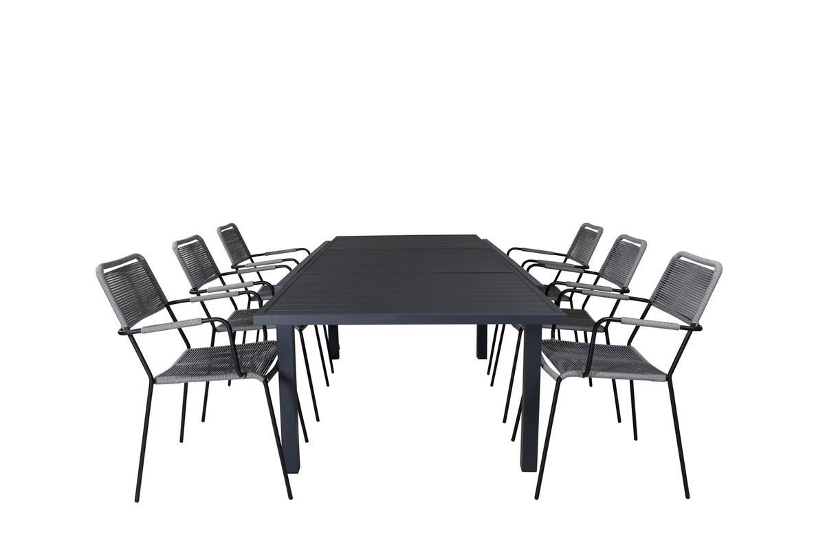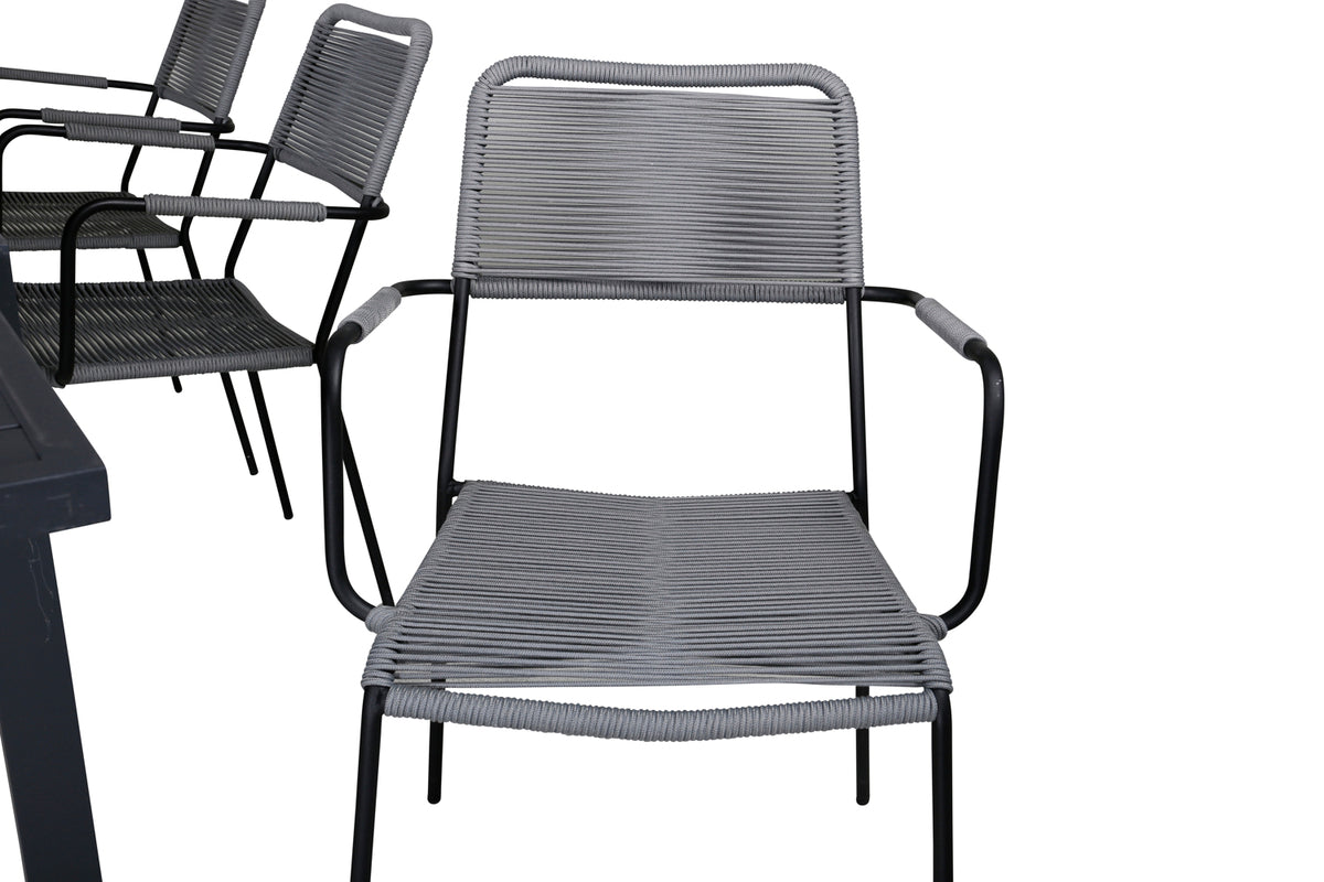 Klassisk spisegruppe, der passer i de fleste husholdninger! Spisebord Marbella sammen med stole i serien Lindos er som skabt til dig, der vil skabe en hyggelig og moderne følelse i udestuen eller på terrassen. Bordet er forlængeligt.