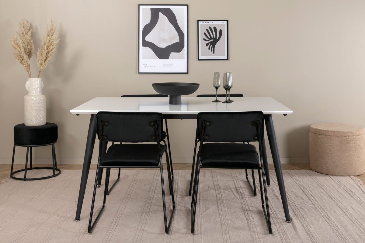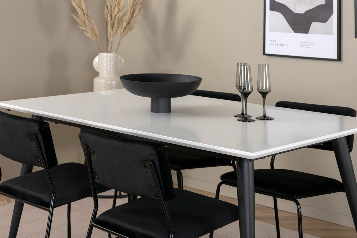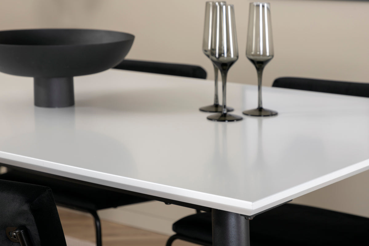 Jimmy & Kenth Rektangulært Spisebord 150 x 90 Hvid + Spisebænk 2-pak Sort