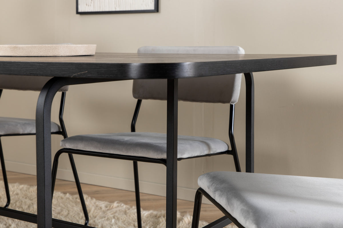 Kenth & Uno spisebordsstol 2-pak grå + rektangulært spisebord 200 x 90 sort