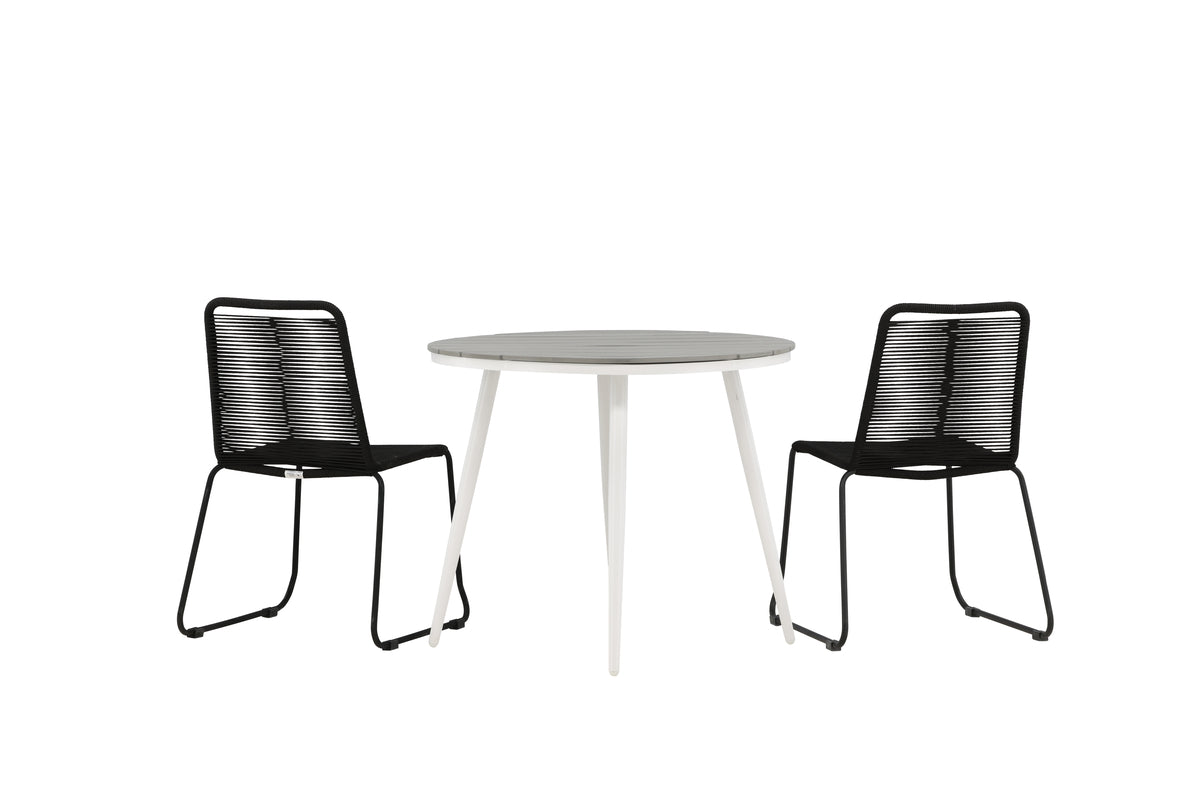 Rundt spisebord 90 Grå + Spisebordsstol 2-pak Sort