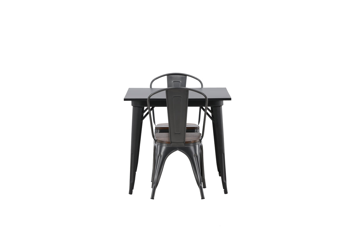 Tempe Rektangulært Spisebord 80 x 80 Sort + Spisebordsstol 2-pak Valnød