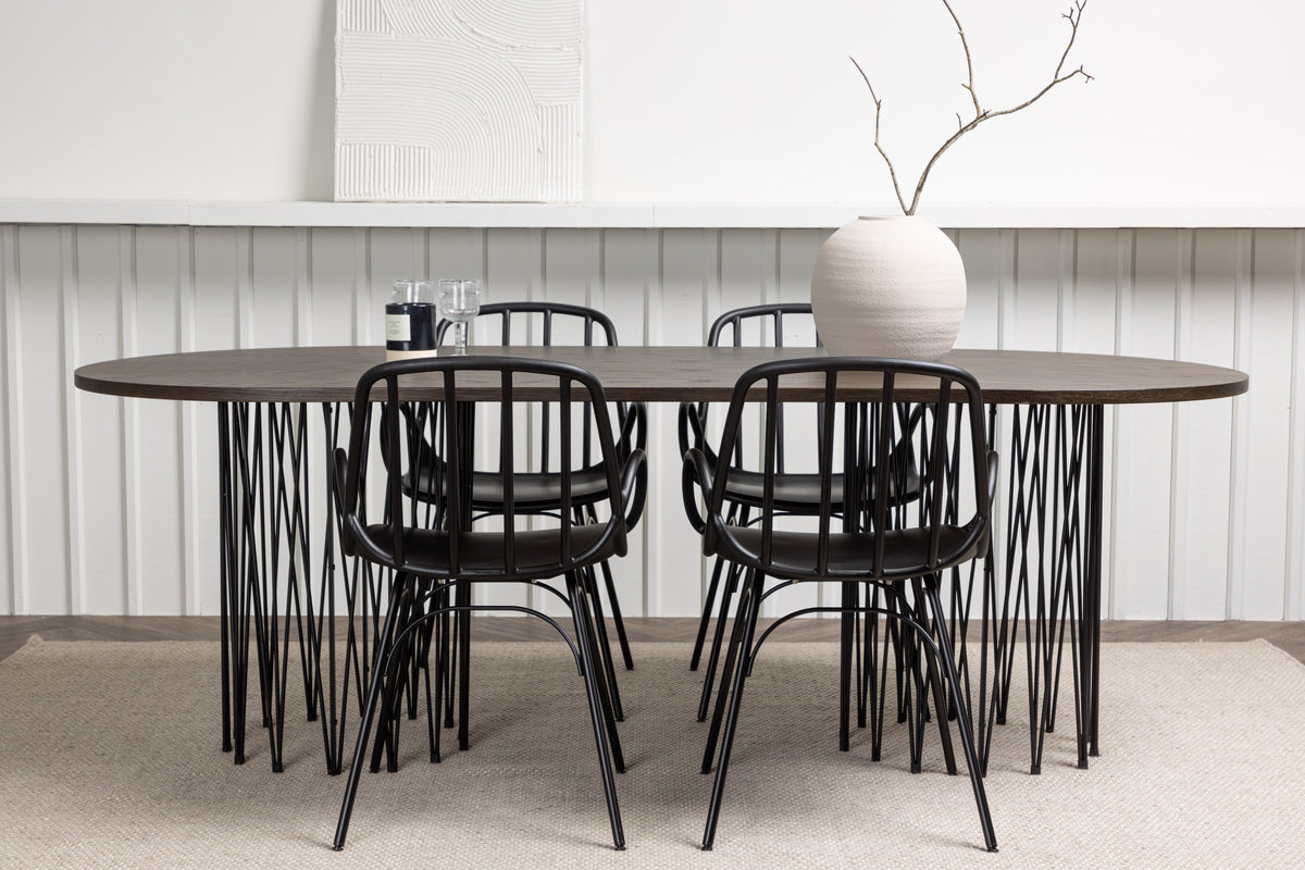Dyrön & Stone Spisebordsstol 2-pak Sort + Oval Spisebord 220 x 100 Mocca