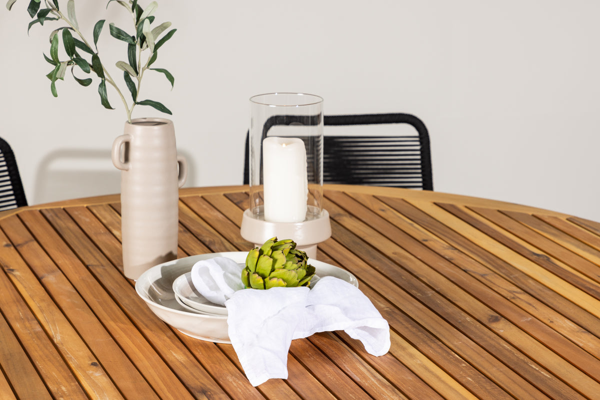 Fremstillet af akacietræ giver Tucumán-bordet en naturlig og indbydende følelse til dit udendørs miljø. Dets naturfarve smelter harmonisk ind i omgivelserne og skaber en fredfyldt atmosfære, hvor du og dine gæster kan slappe af og nyde gode måltider.