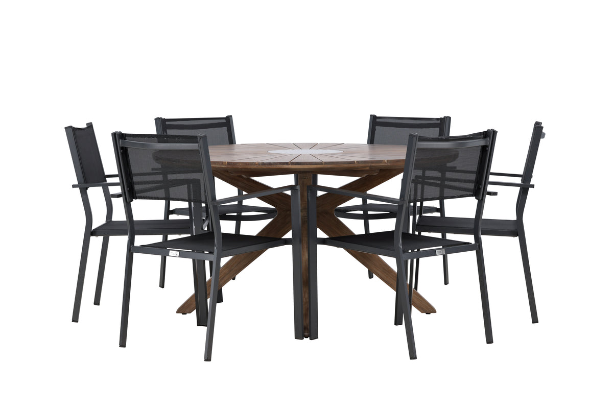 Opdag den perfekte kombination af funktionalitet og stil med vores spisegruppe, komplet med seks Copacabana stole og det elegante Rosario bord. Dette omhyggeligt udvalgte ensemble er udformet til at forhøje din udendørsoplevelse.