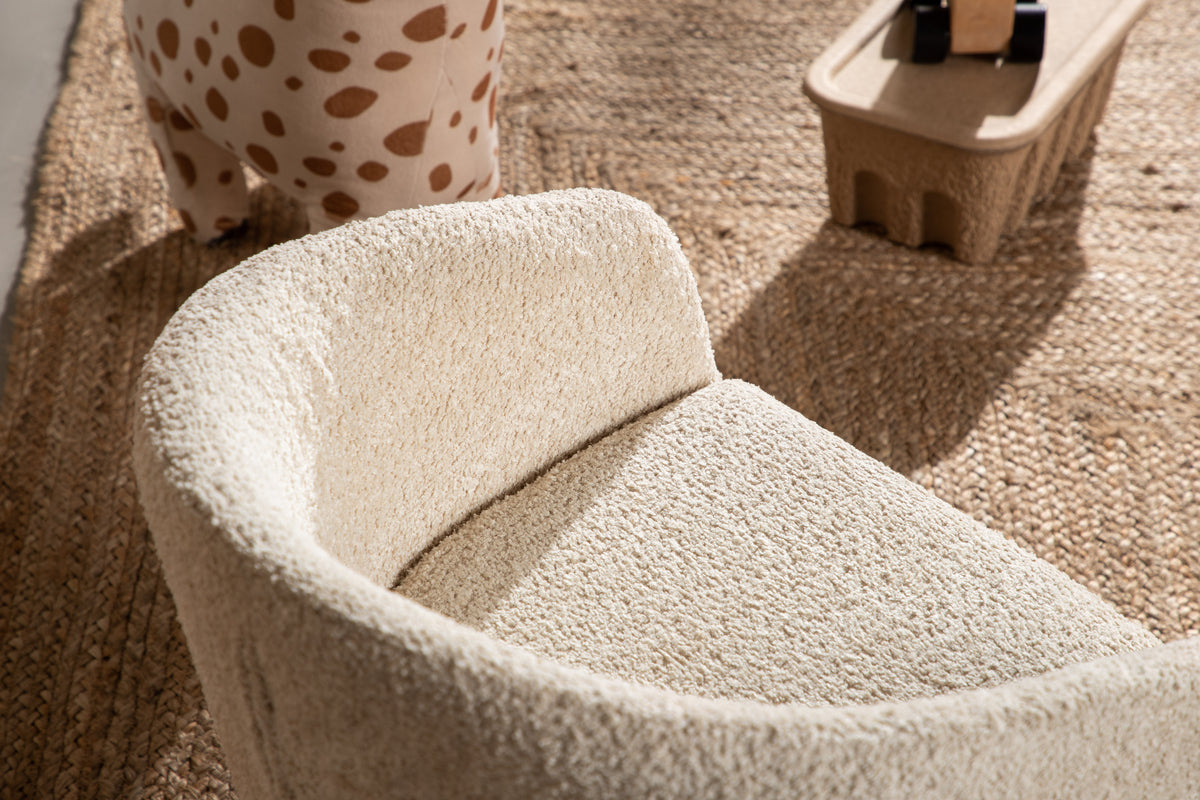 Fluffy - en lænestol der fanger blikket! Denne hyggelige lænestol tilhører Venture Home kollektionen og har et smagfuldt Skandinavisk design med bløde former og høj komfort. Fremstillet i det indbydende og lodne teddy stof i en trendsikker hvid farve og let udadgående ben i sort stål. Den behagelige siddedybde inviterer til lange, afslappede stunder. Placer den ved siden af sofaen eller solitært i læsehjørnet - kun fantasien sætter grænser!