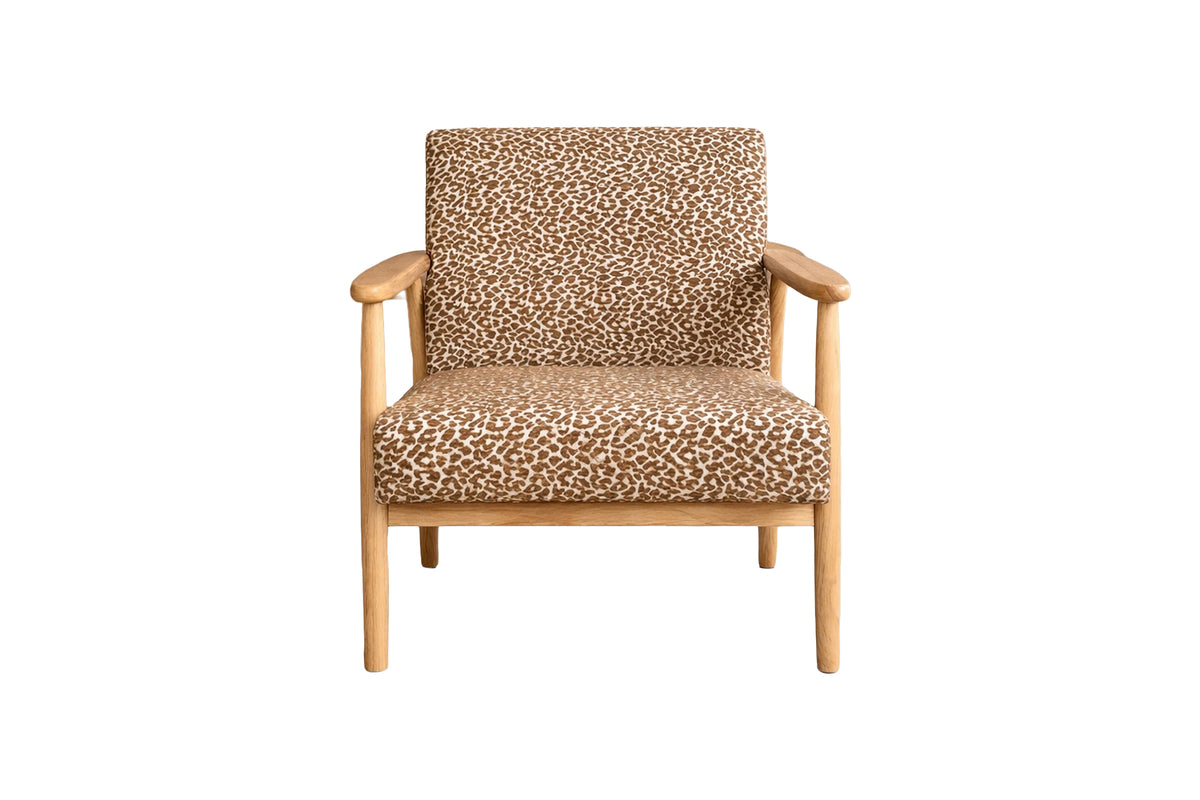 Runbert er en karakterfuld lænestol, der kombinerer varmt brunt tekstil med naturlige trædetaljer. Den lige form og de afrundede armlæn giver et charmerende udtryk med tydelige retrovibes.