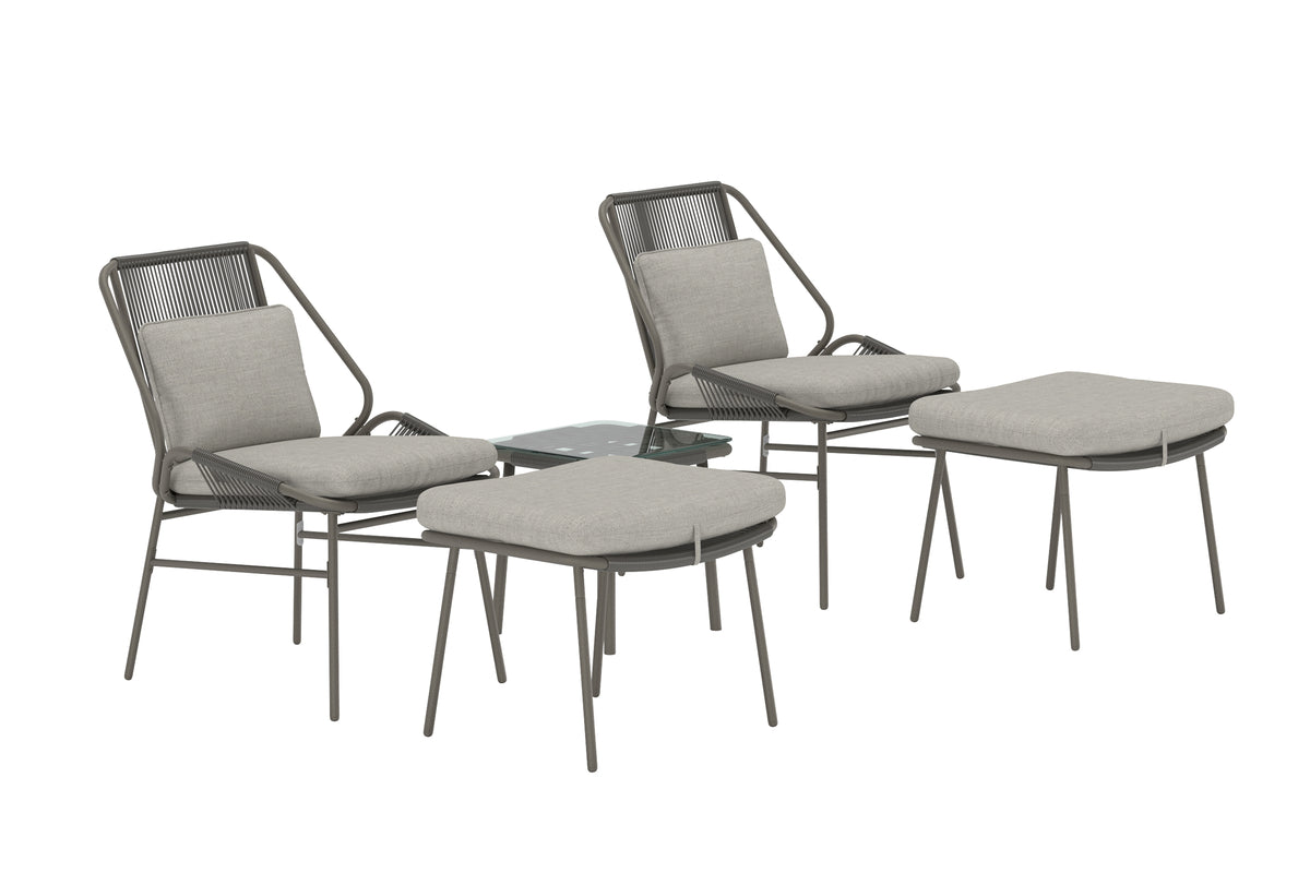 Zakynthos Lounge Set i brun nuance er en stilren og komfortabel møbelgruppe, der inviterer til afslapning. Sættet består af to lænestole med bløde hynder, to matchende fodskamler samt et lille bord med glasplade – perfekt til at skabe et harmonisk loungemiljø på terrassen, i haven eller ved poolen. Den brune ramme sammen med de bløde hynder giver en varm og elegant følelse, der nemt smelter ind i forskellige udendørs miljøer. Zakynthos Lounge Set er det perfekte valg for dig, der vil kombinere komfort med moderne design.