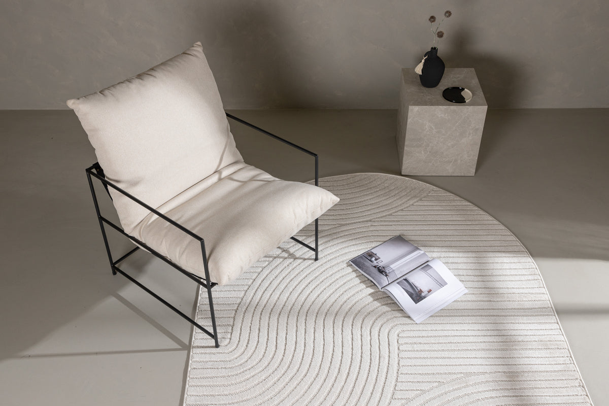 Det ovale tæppe Vince er designet helt i tråd med tidens trends! Tæppet har et dekorativt, abstrakt mønster i den tætte luv, som bidrager til et moderne blikfang. Det bløde materiale og den cremefarvede nuance giver varme til atmosfæren i rummet og passer nemt sammen med øvrige farveskalaer og indretning. Giv dit hjem et charmerende løft og bryd rammerne ved at investere i et ovalt tæppe! Tæppets mål: 230x160 cm.
