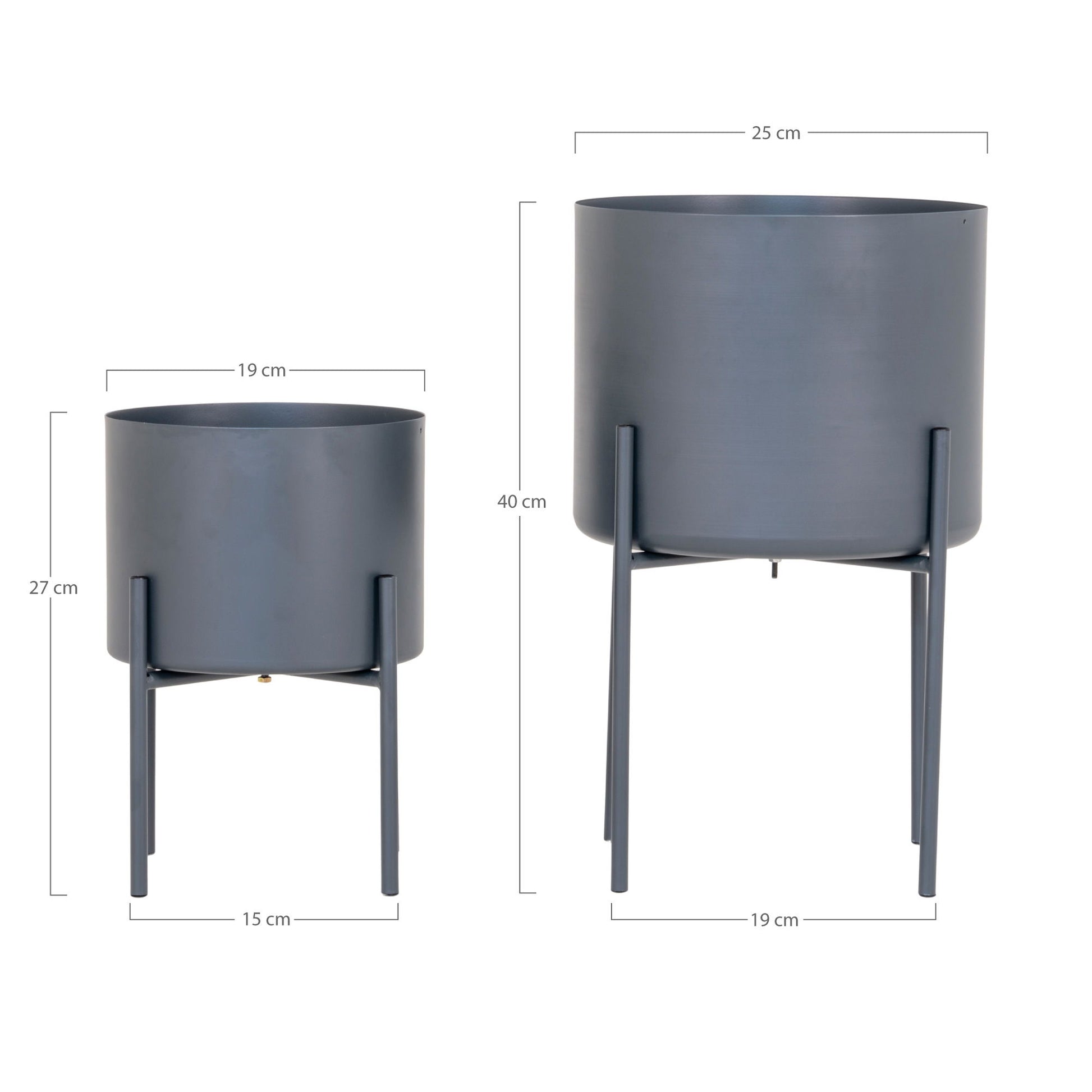 Urtepotter, stål, grå, sæt af 2