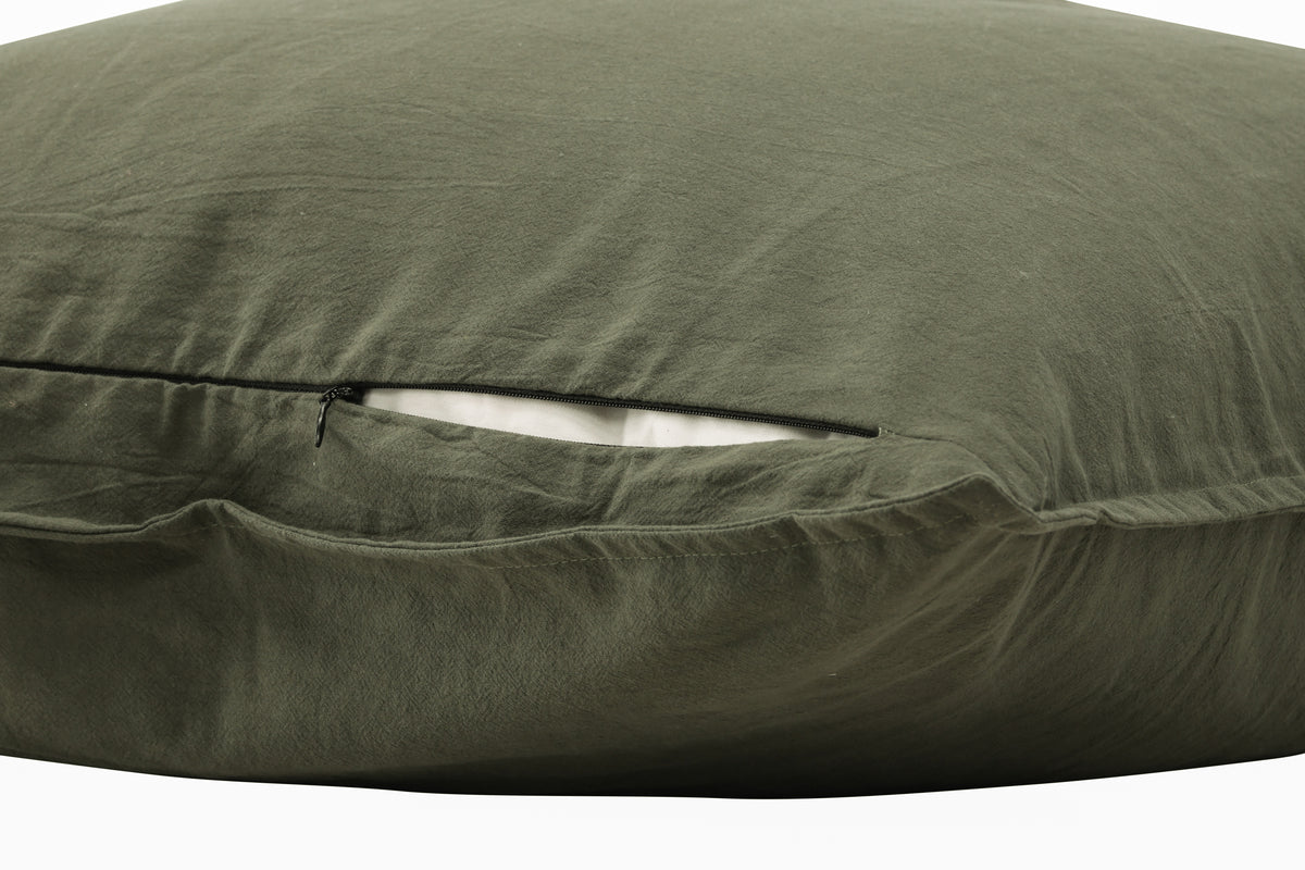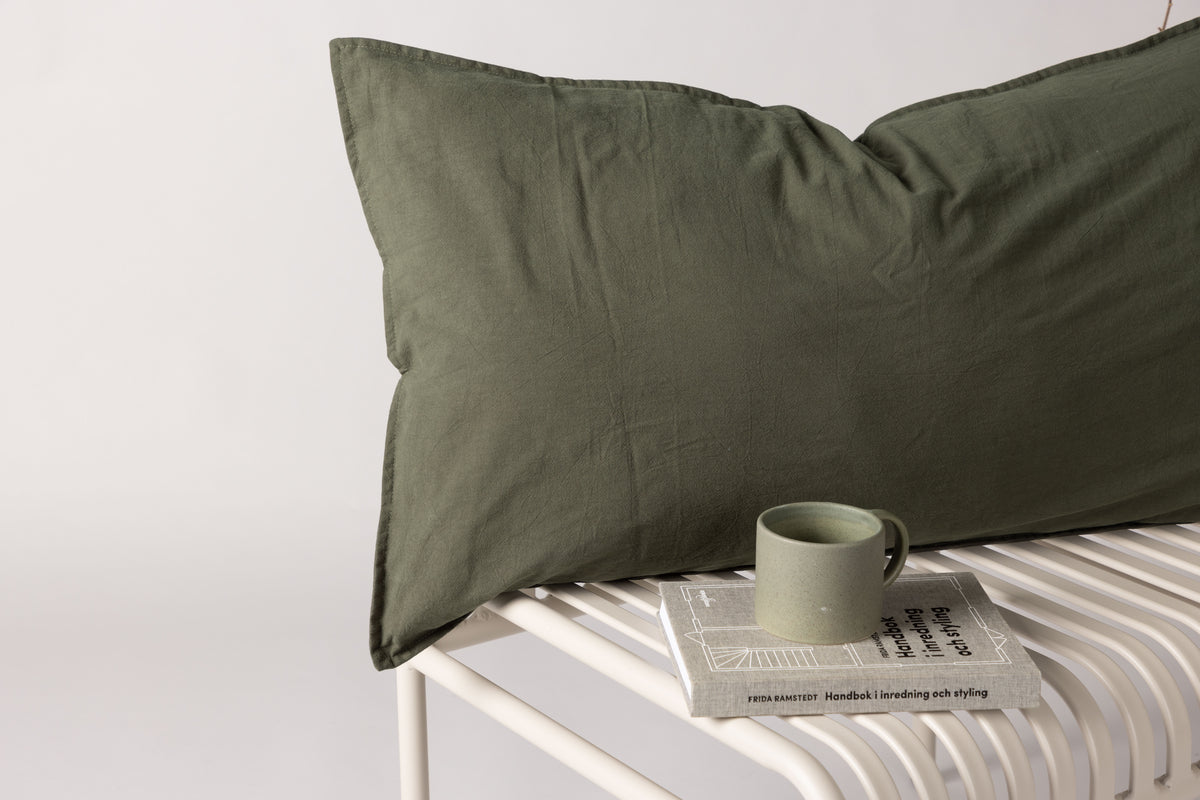 Varm op atmosfæren i rummet med behagelige puder i en skovlignende grøn farve og smidigt bomuldsstof! Ronja-serien tilbyder pudebetræk i flere forskellige farver og størrelser, der er nemme at både variere og kombinere med andre pudebetræk. Pudebetrækket har en diskret lynlås på bagsiden og en pipingkant i samme stof. Følg vores plejeråd, så kan du nemt tage hånd om eventuelle pletter for at få en pude, der holder over tid!