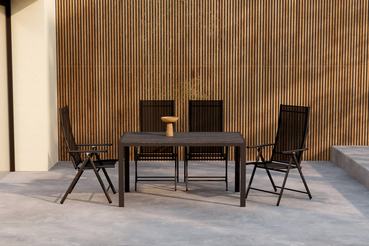 Med Mirko spisebordssæt får du en kombination af moderne design, smart funktionalitet og høj komfort, hvilket gør det til et perfekt valg for dig, der vil have et elegant og fleksibelt spisebordssæt udendørs.