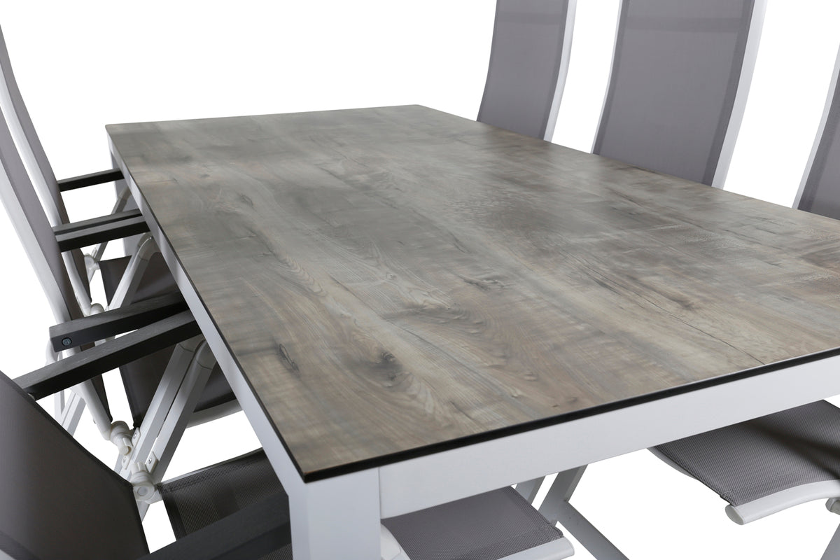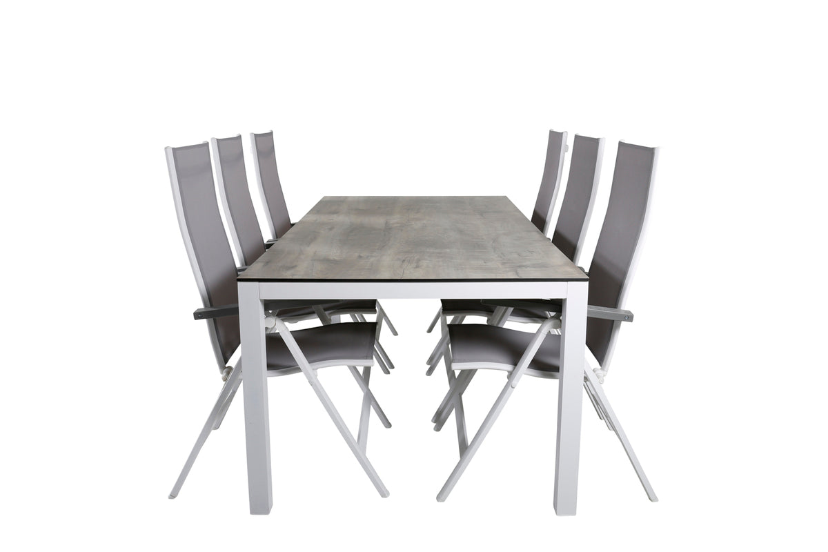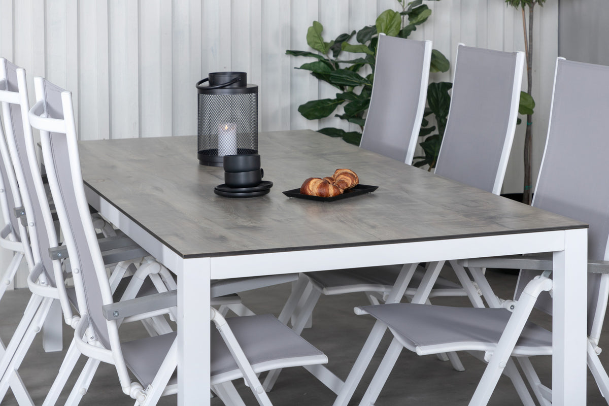 Albany & Llama Positionsstole 2-pak Grå + Rektangulært Spisebord 75 x 205 x 100 Grå