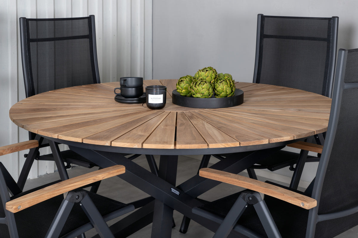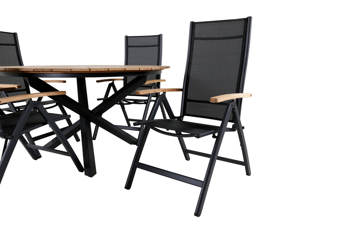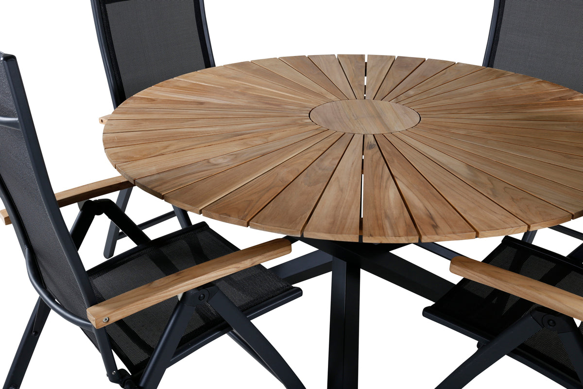 En smukt matchende spisegruppe som garanteret kommer til at gøre succes på terrassen i sommer! I de fældbare spisebordsstole Panama sidder du og dine gæster bekvemt længe. Her sammen med det dekorative træbord Mexico. Velkommen udelivet i sommer med en trendy rund spisegruppe!