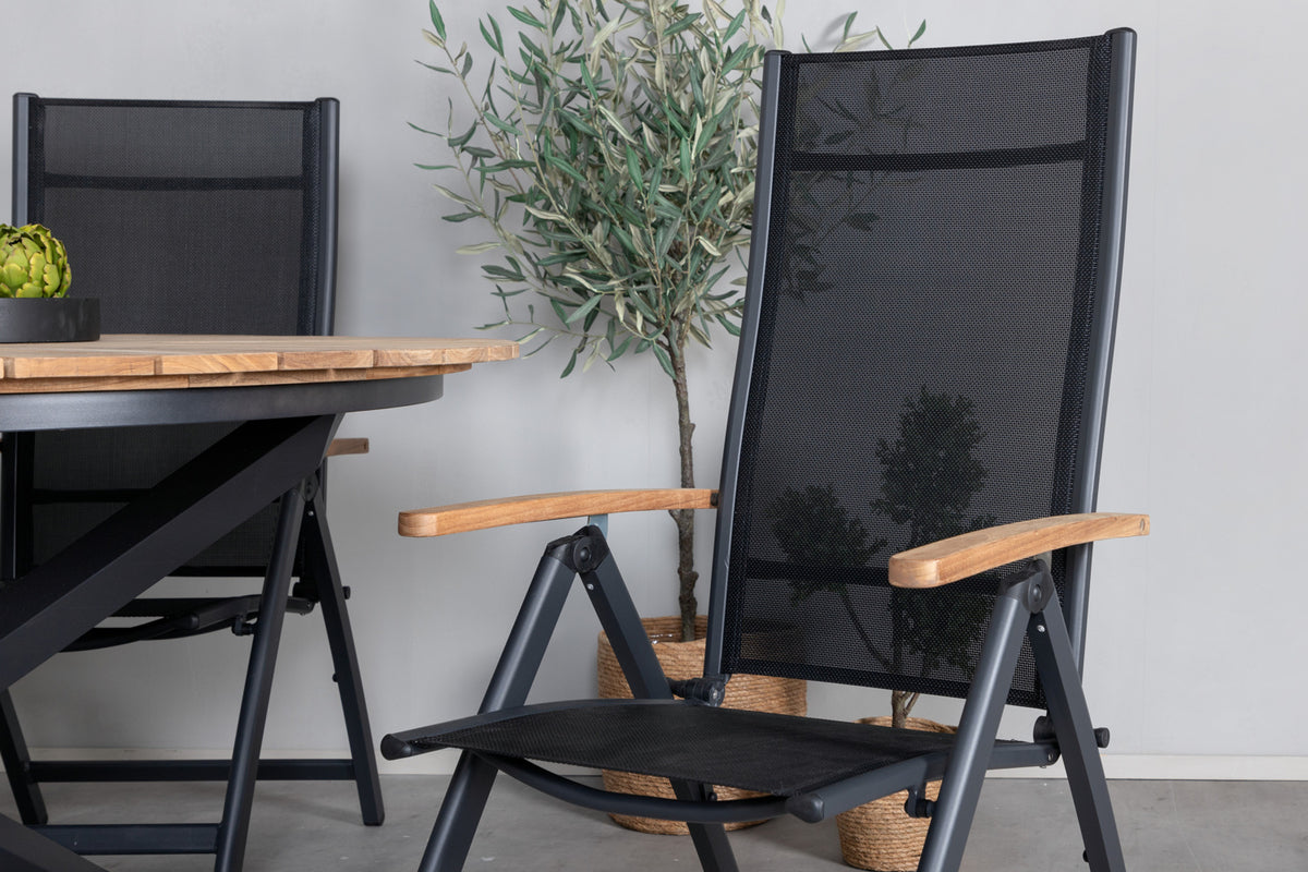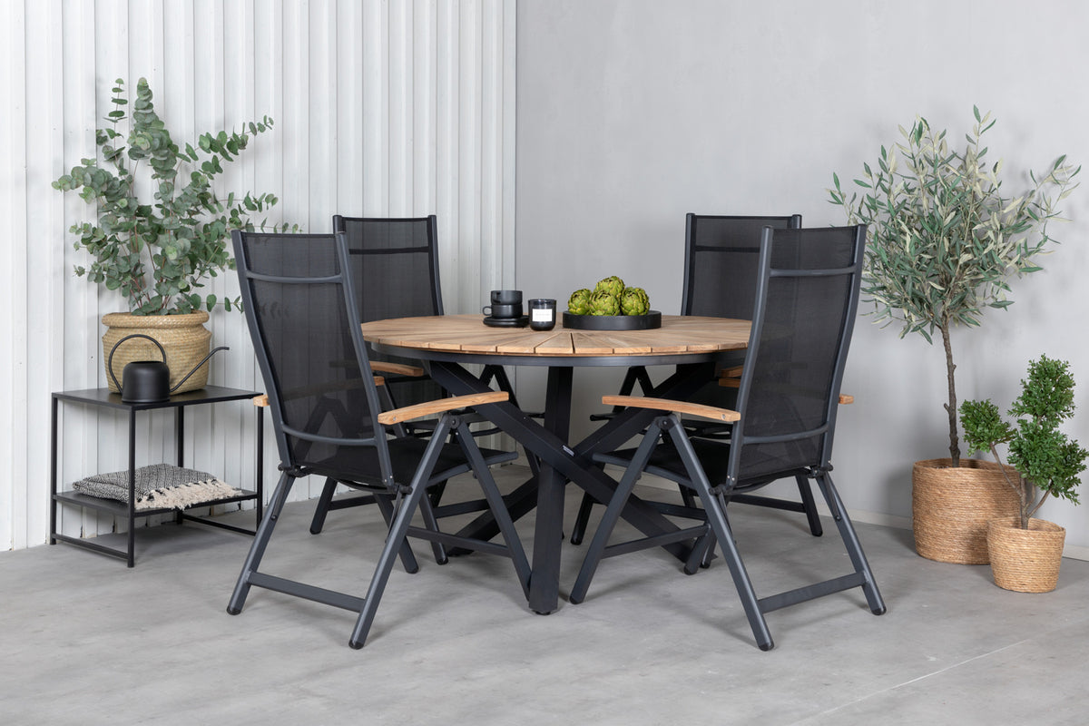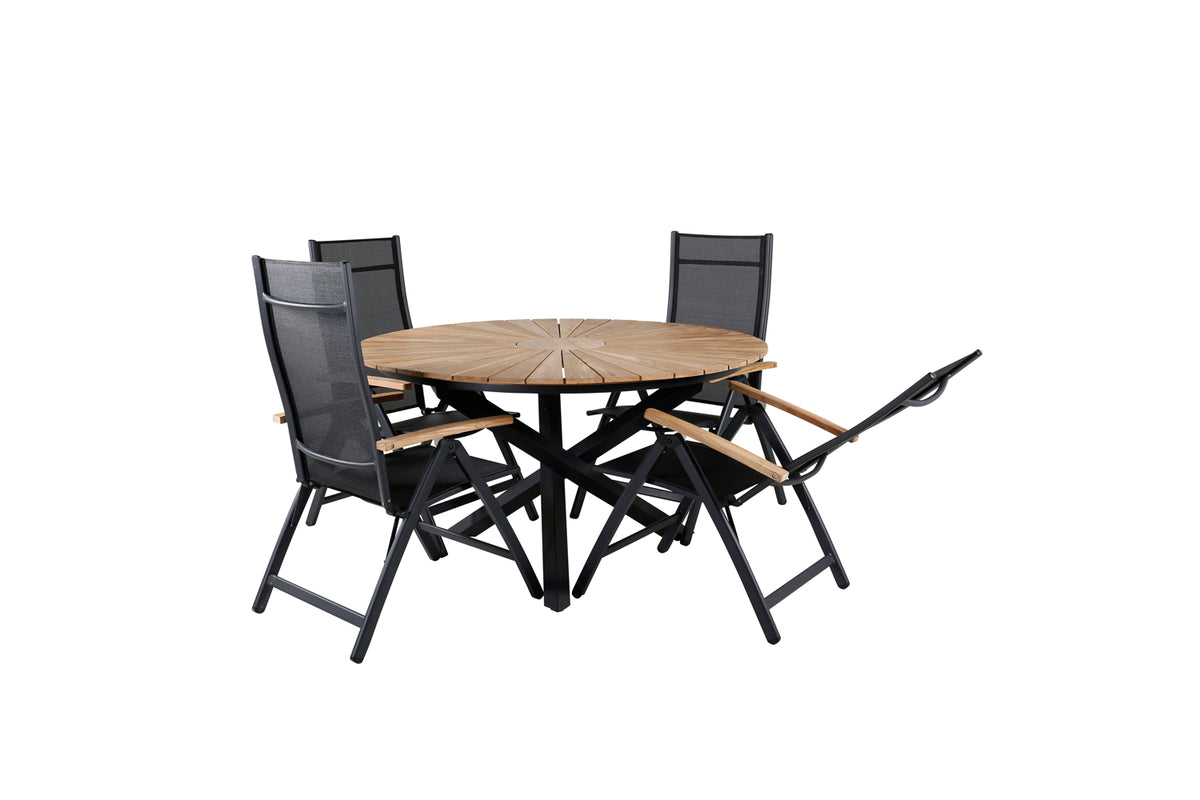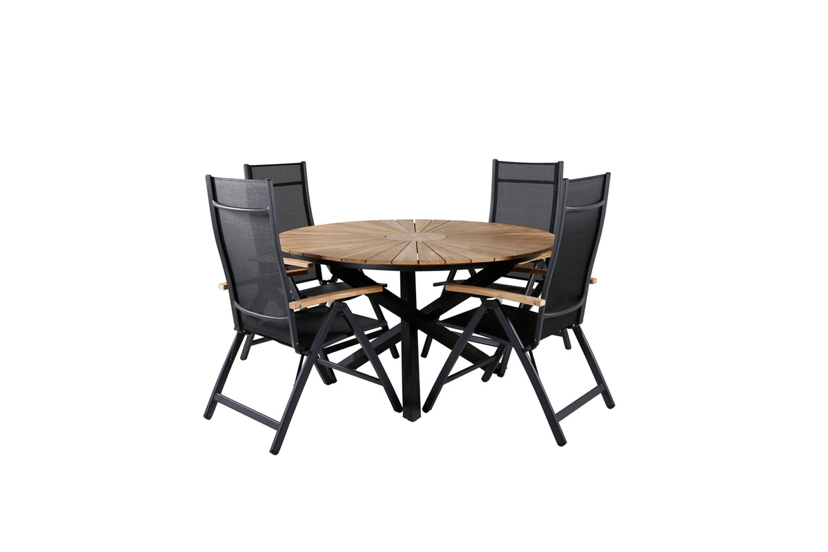 En smukt matchende spisegruppe som garanteret kommer til at gøre succes på terrassen i sommer! I de fældbare spisebordsstole Panama sidder du og dine gæster bekvemt længe. Her sammen med det dekorative træbord Mexico. Velkommen udelivet i sommer med en trendy rund spisegruppe!