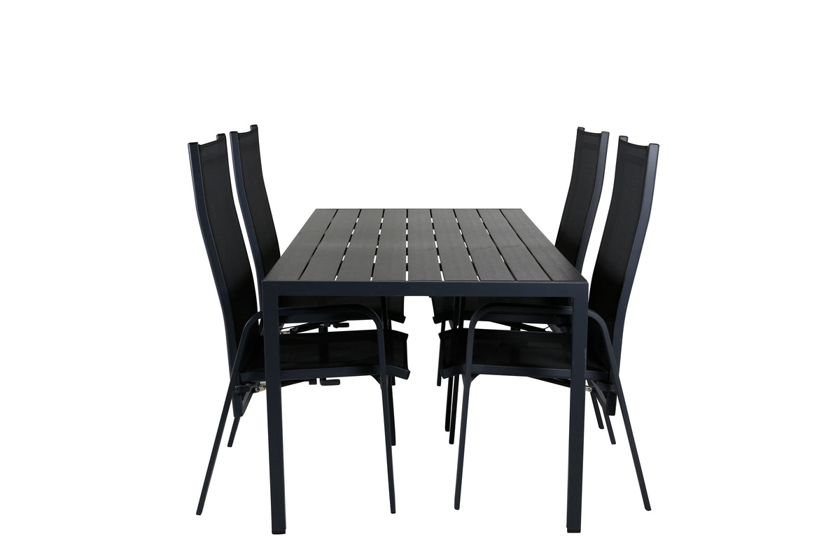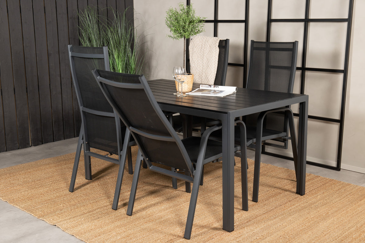 Moderne og stilrent spisebordssæt, der passer på enhver terrasse eller udeplads! Spisebordet Break her sammen med de foldbare stole Copacabana.