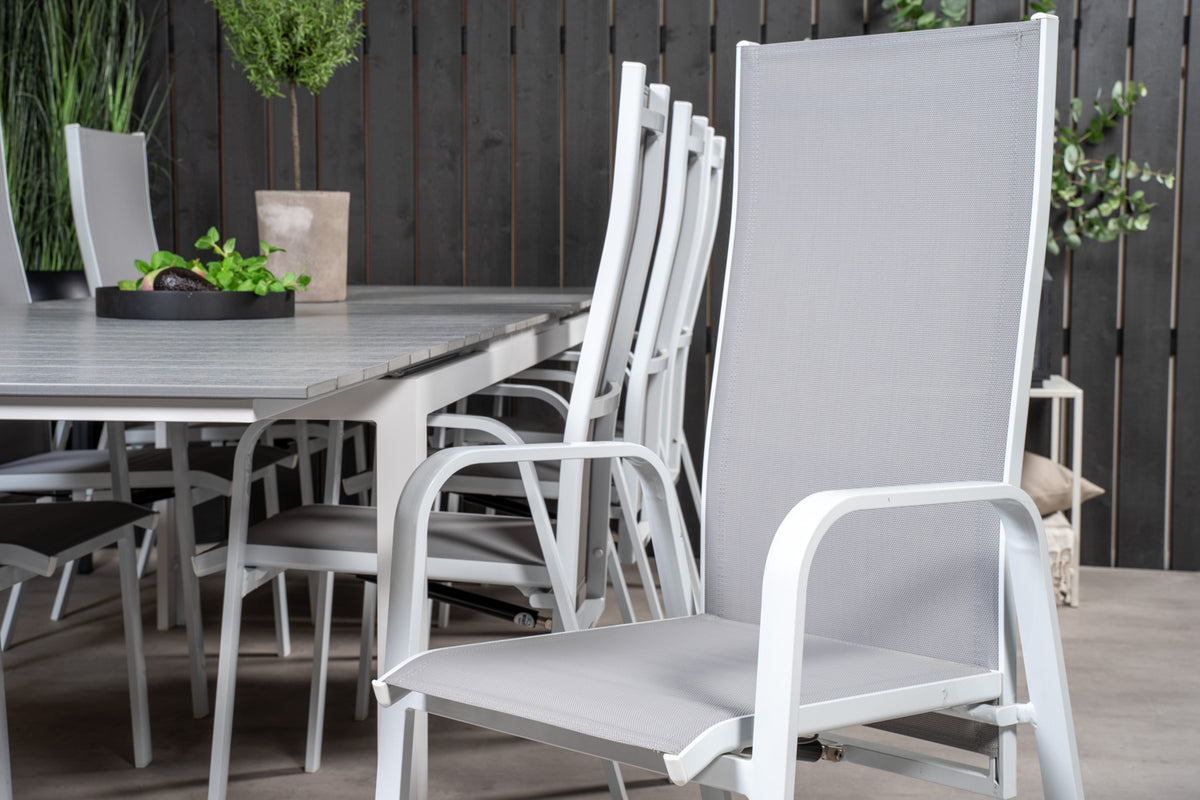Copacabana & Levels Reclinerstole Grå + Rektangulært Spisebord 229x100x75 Hvid