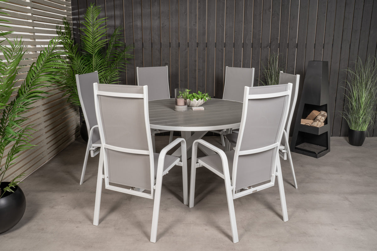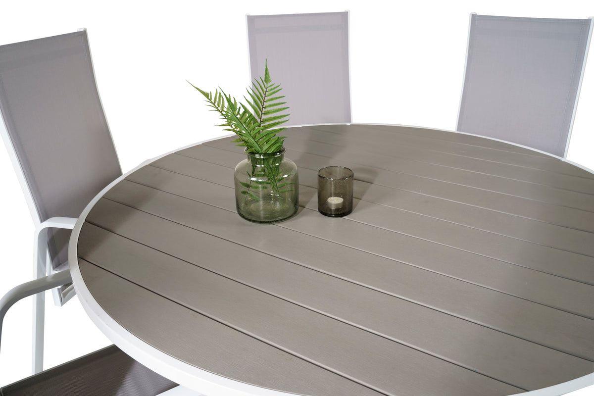 Copacabana & Parma Reclinerstole Grå + Rundt Spisebord ø140 Hvid