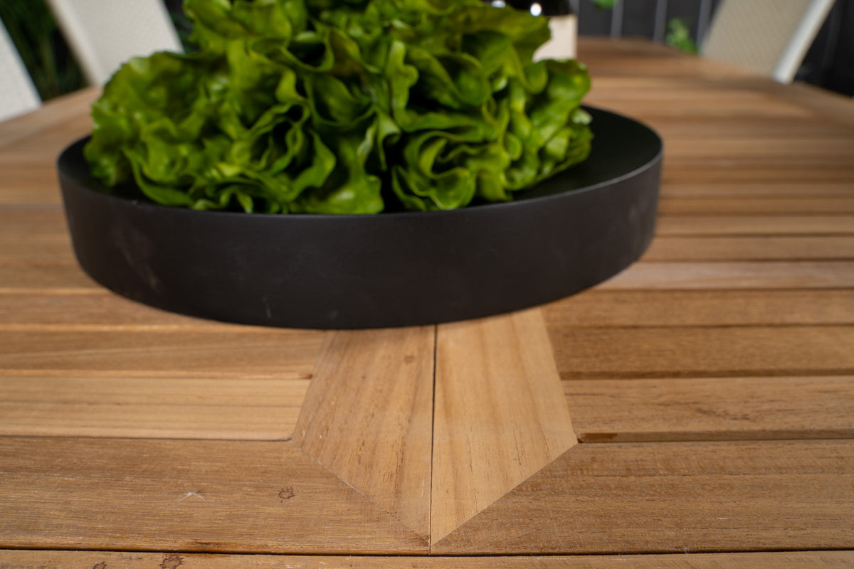 En elegant spisegruppe, der passer perfekt til terrassen! Vores forlængelige spisebord Panama i klassisk stil har en lækker bordplade i træ. Her sammen med vores foldbare spisestole Padova i hvidt kunstflet. Stolenes høje siddekomfort inviterer til lange og dejlige stunder for samvær!