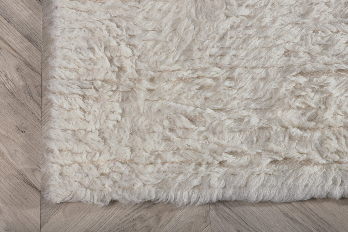 Indret dit hjem indbydende med et hyggeligt tæppe, der skaber en varm atmosfære! Denne rektangulære skønhed er en del af tæppeserien Leiko, som tilbyder håndvævede uldtæpper i forskellige farver og størrelser. Tæppet har en blød og fyldig følelse med sin høje luv, der giver et hyggeligt indtryk til rummet. Den tidløse hvide farve gør tæppet let at tilpasse til øvrig indretning og skaber en lækker glans. Læg det under sofabordet eller i soveværelset og lad det blive en hyggelig detalje at placere fødderne på! Tæppets mål: 300x200 cm.