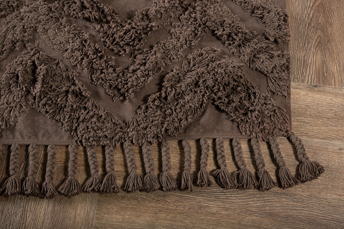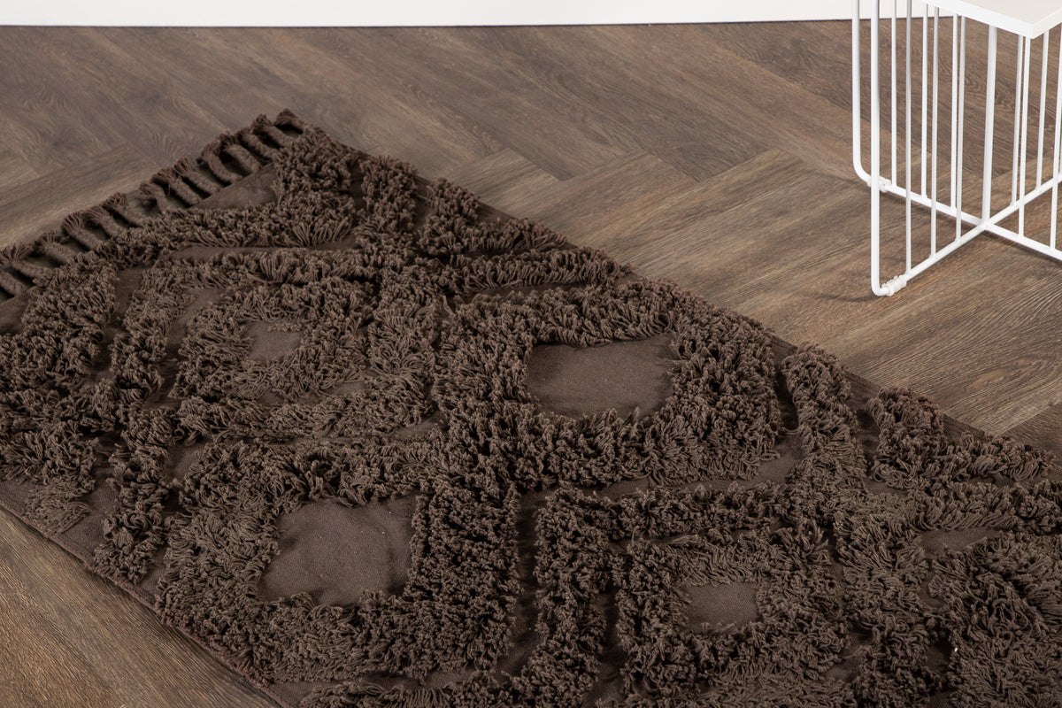 Skab en hyggelig atmosfære i dit hjem med et tæppe, der giver et moderne look til indretningen og en varmende følelse. Uldtæppet fra serien Hilma er en lang og smal, rektangulær tæppedrøm i moderne udgave, her i en smuk brun farve. Tæppet har et tuftet mønster i højere luv og en flettet frynserække langs kortsiderne, som bidrager til et klassisk design i kombination med det trendy. De slidstærke egenskaber ved materialet gør, at tæppet fungerer udmærket i de fleste rum. Placer det alene i hallen eller i stuen for at løfte stilniveauet et par trin! Tæppets mål: 200x70 cm.