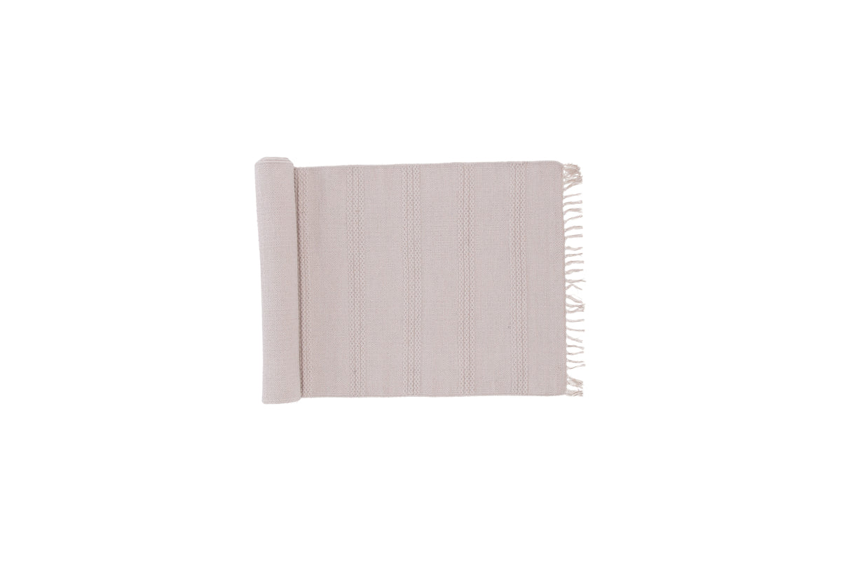Skab en hjemlig atmosfære med et klassisk bomuldstæppe! Mattserien Nico tilbyder håndvævede rektangulære tæpper i forskellige farver og størrelser. Dette stilrene tæppe i beige farve med dekorative frynser og flettede detaljer er let at kombinere med andre indretningsdetaljer og bidrager til en hyggelig og varm følelse i rummet med sin generøse størrelse. Passer lige så fint i stuen som soveværelset. Tip, brug gerne et skridsikkert underlag, så tæppet bliver på sin plads. Tæppets mål: 250x80 cm.