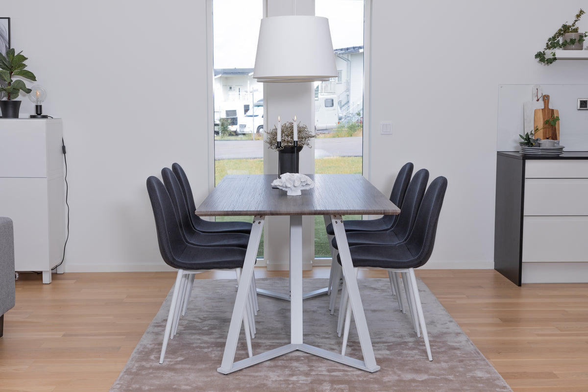 Moderne og hyggeligt – En spisegruppe som mange sætter pris på! Spisebord Marina sammen med Polar spisebordsstole giver dig en spisegruppe at længes hjem til. Stolene er klassiske og nette, hvilket gør, at de passer ind i de fleste husholdninger.