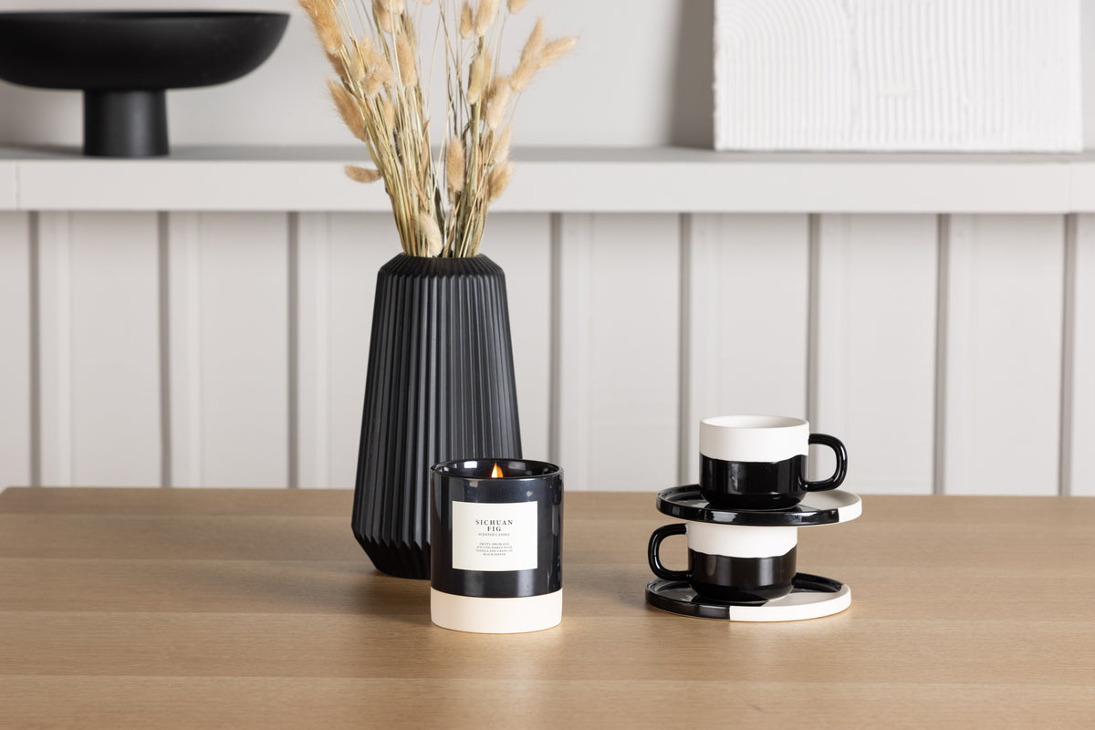Sammen med det kvadratiske bord Leo kommer vores moderne sorte spisestole fra serien Zeno, som inviterer til timers behagelige måltider. Stolens ryg og sæde er fremstillet af hvid plast og har en indbygget siddepude, der giver enestående komfort. Med sine træben skaber stolene en naturlig og indbydende atmosfære og matcher desuden bordet perfekt.