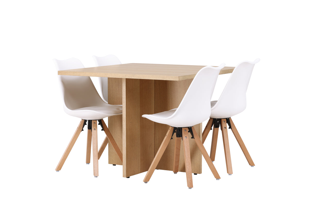 Leo & Zeno Rektangulært Spisebord 100 x 100 Lysgrå + Spisebordsstole 2-pak Hvid