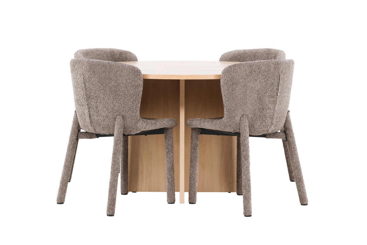 Skab en elegant og sofistikeret spiseplads med spisebordsstolen Astoria og spisebordet Strada. Oplev den perfekte kombination af luksuriøs komfort og stilren funktionalitet med spisebordsstolen Astoria og spisebordet Strada. Tilsammen skaber de en indbydende og harmonisk atmosfære, der gør hvert måltid til en nydelsesfuld oplevelse. Spisebordsstolen Astoria er betrukket i en eksklusiv brun bouclé, som tilfører varme og elegance til dit spiserum. Boucléens bløde, teksturerede overflade giver en luksuriøs følelse, mens dens dybe nuance smelter smukt ind i både klassiske og moderne indretningsstile. Det omsluttende ryglæn og det komfortable sæde er designet til at tilbyde højest mulig komfort, hvilket gør stolen perfekt til lange, afslappende middage med familie og venner.