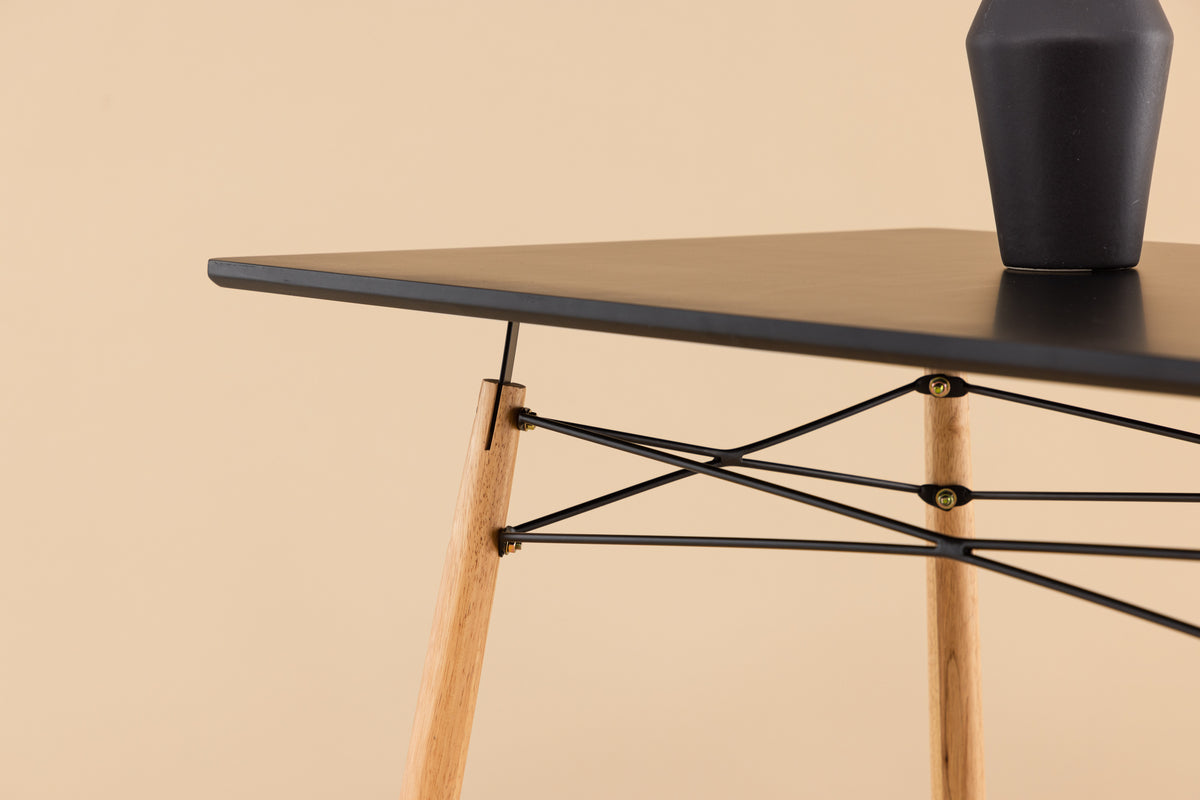 Med sine dimensioner på 120x60 passer dette bord perfekt i dit hjem, uanset om det er i stuen, spisestuen eller kontoret. Den sorte bordplade i MDF giver et sofistikeret touch og holder længe. Understellet i gummitræ giver stabilitet og forstærker bordets tidløse design.