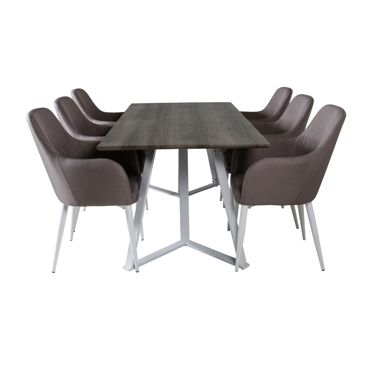 Marina & Comfort Rektangulært Spisebord 180 x 75 x 90 Grå + Spisestole 2-pak Grå