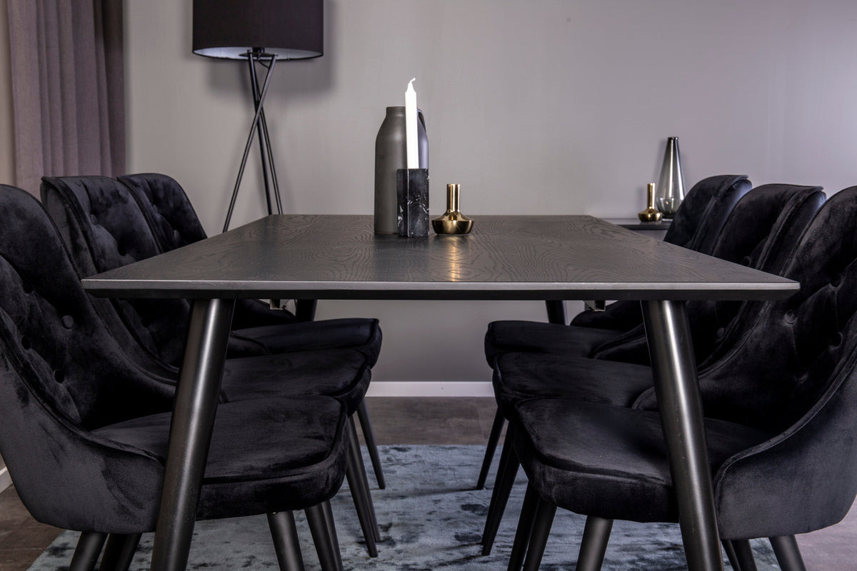 Spisebord Dipp i et slankt design, sammen med spisestole Velvet - den perfekte kombination til dig, der ønsker en trendy spisegruppe. Stolens høje siddekomfort indbyder til lange og dejlige stunder med samvær!