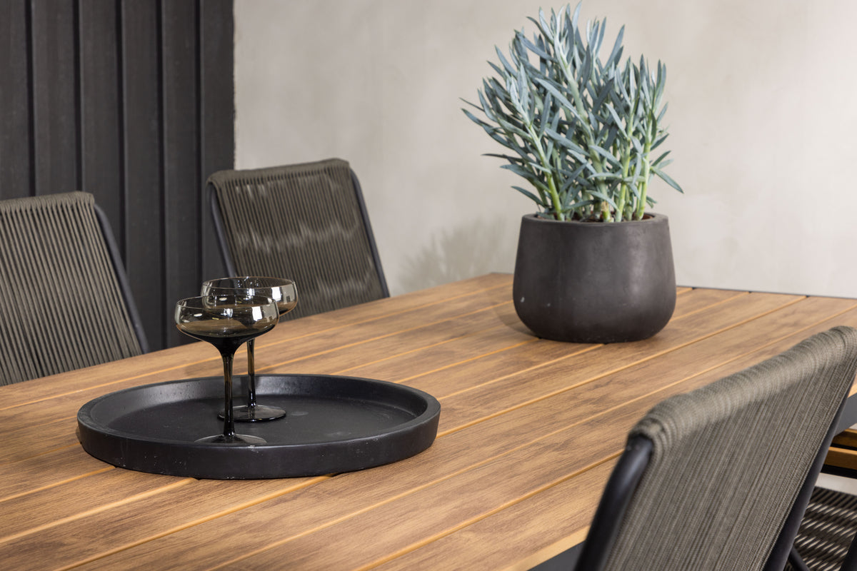 Forhøj trivslen ved sommerens måltider med en trendsikker og behagelig spisegruppe! Vores rektangulære spisebord Break har lige former i klassisk nordisk design med en bordplade i krydsfiner og bordben i sort aluminium. Her i perfekt kombination med spisebordsstole fra serien Bois. Stolen har et behageligt design med armlæn i teak, sort sæde i reb og rammekonstruktion i sort stål. Gør familien klar til et enestående udeliv! Bordets mål: 200x90cm.