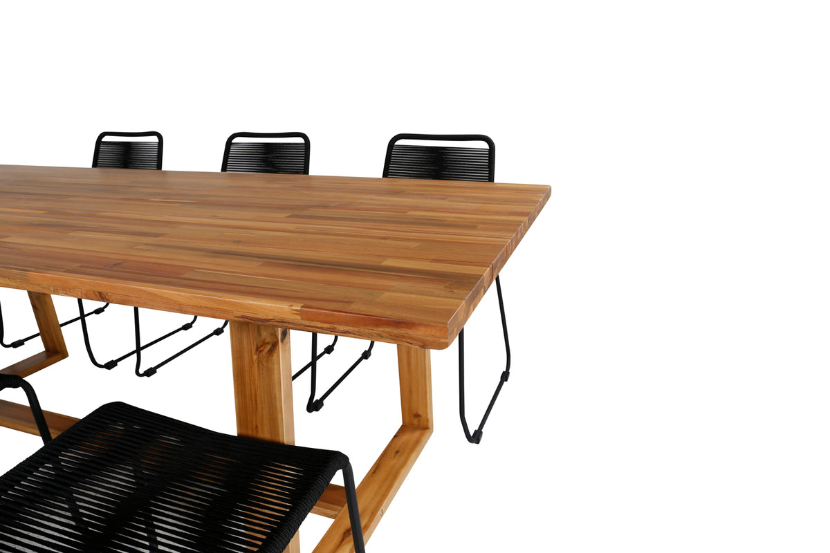 Plankton & Lindos Rektangulære Spisebord 220 x 100 Natur + Spisestole 2-pak Sort