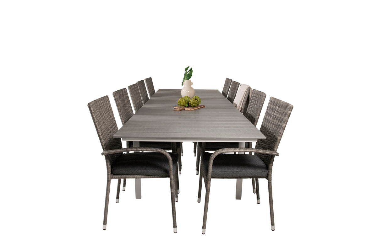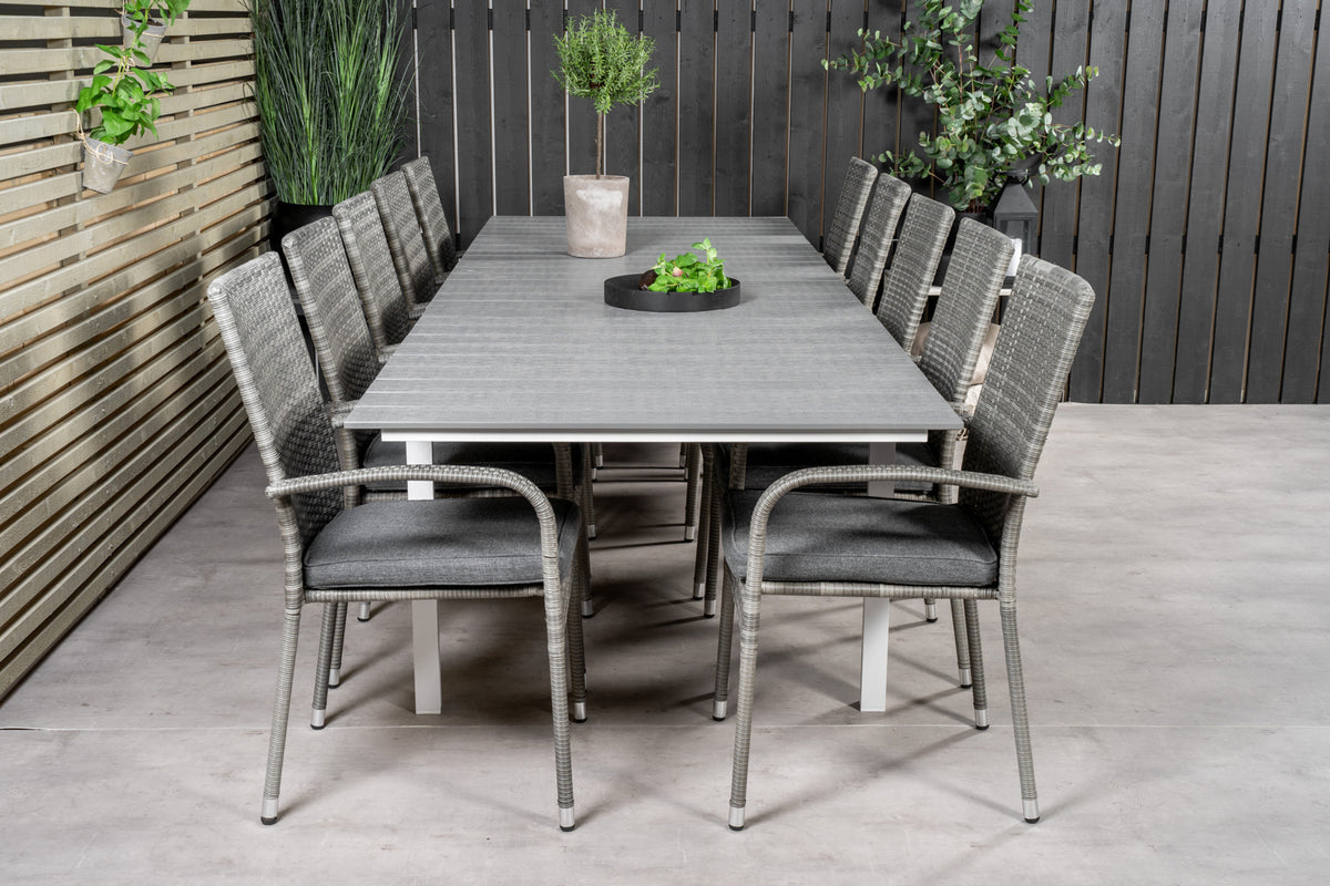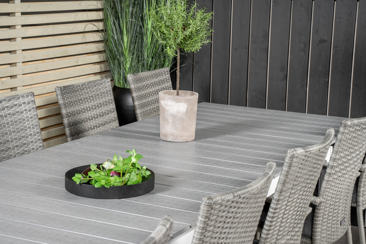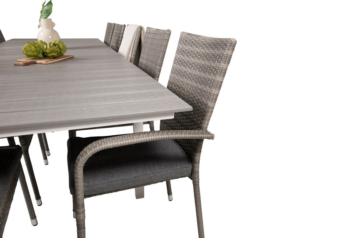 Levels & Anna Rektangulært Spisebord 229x100x75 Hvid + Spisestole Grå