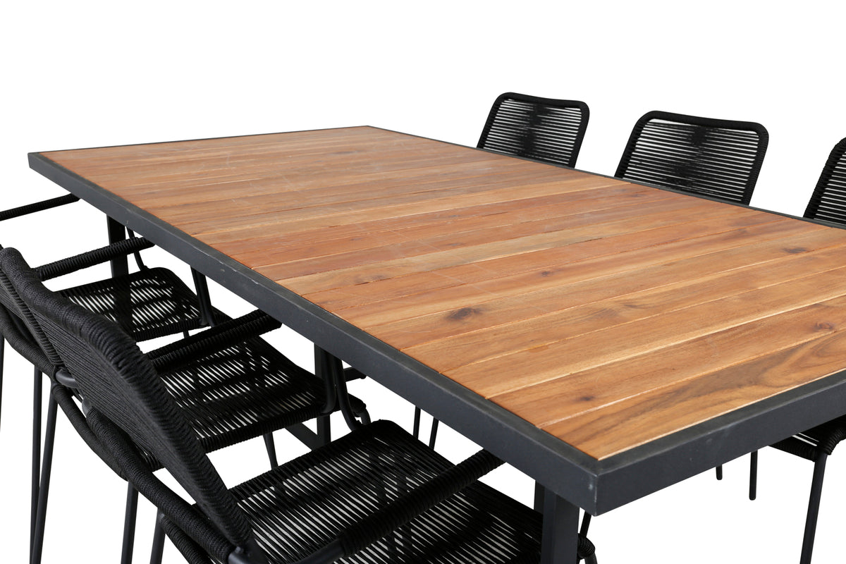 Khung & Lindos Rektangulært Spisebord 75 x 200 x 100 Natur + Spisestole 2-pak Sort